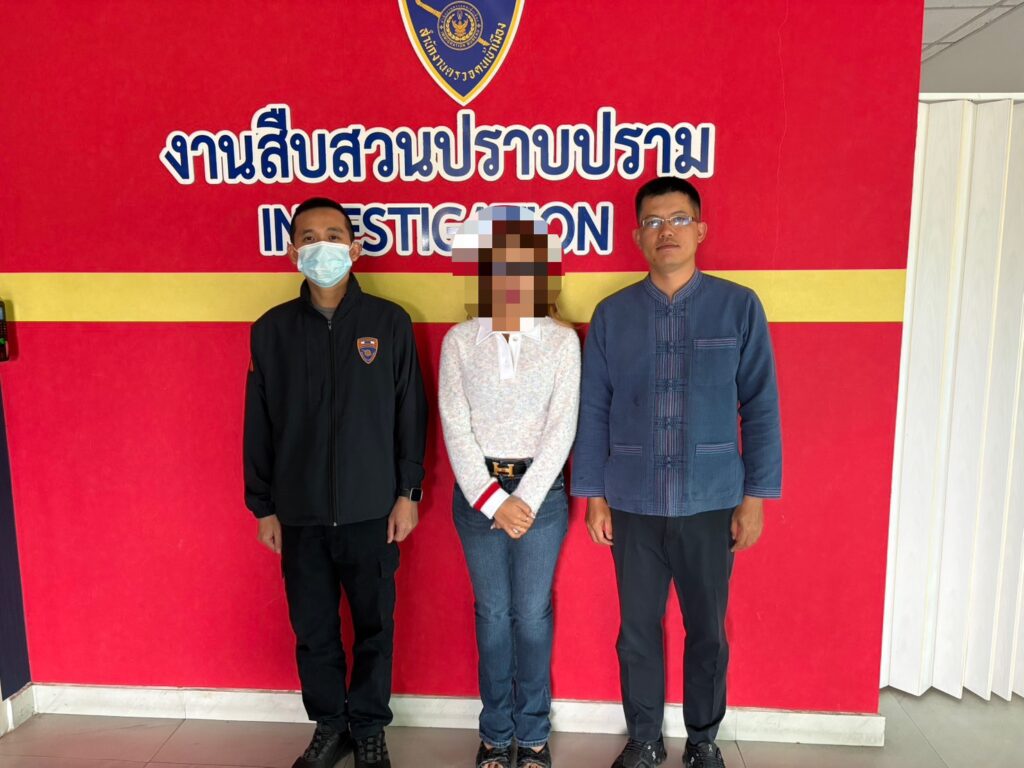แห่งหนึ่งในเมืองเชียงใหม่ จึงเข้าแสดงตัวพร้อมหมายจับศาลจังหวัดธัญบุรี ที่ 1016/2568 ลงวันที่ 27 พฤศจิกายน 2568 ความผิดฐาน “ร่วมกันฉ้อโกง, ร่วมกันยักยอกทรัพย์” หลังจับกุมได้ดำเนินการนำตัวส่ง พงส.สภ.คูคต จังหวัดปทุมธานี เพื่อดำเนินคดีตามกฎหมายต่อไป