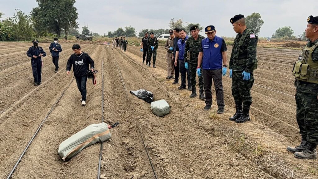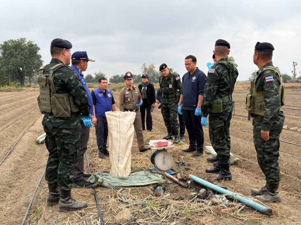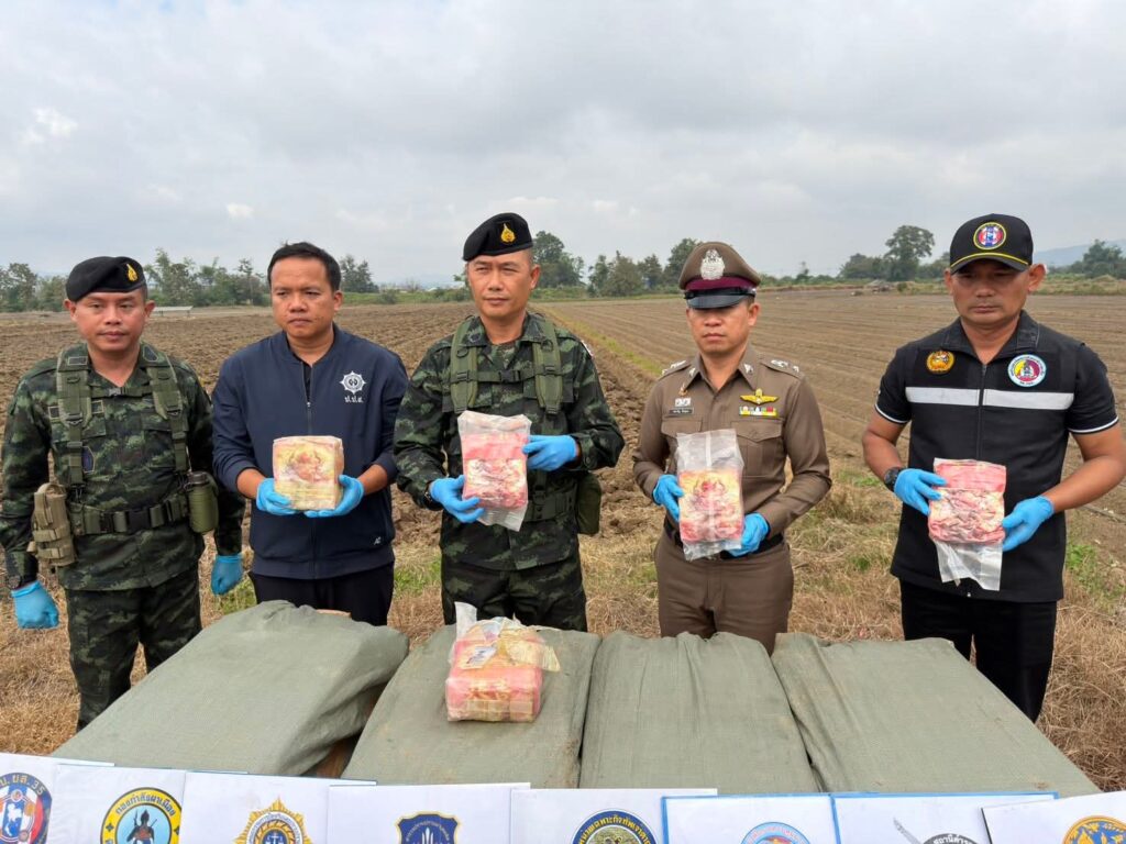 ต่อมาเมื่อเวลา 06.30 น. เจ้าหน้าที่ได้จัดกำลังเข้าทำการตรวจสอบพื้นที่ ตรวจพบกระสอบดัดแปลงเป็นเป้สะพาย จำนวน 10 กระสอบ ภายในบรรจุยาเสพติดให้โทษประเภท 1 (ไอซ์) กระสอบละ 25 ก้อน น้ำหนักก้อนละ 1 กิโลกรัม รวมน้ำหนักทั้งสิ้น ประมาณ 250 กิโลกรัม