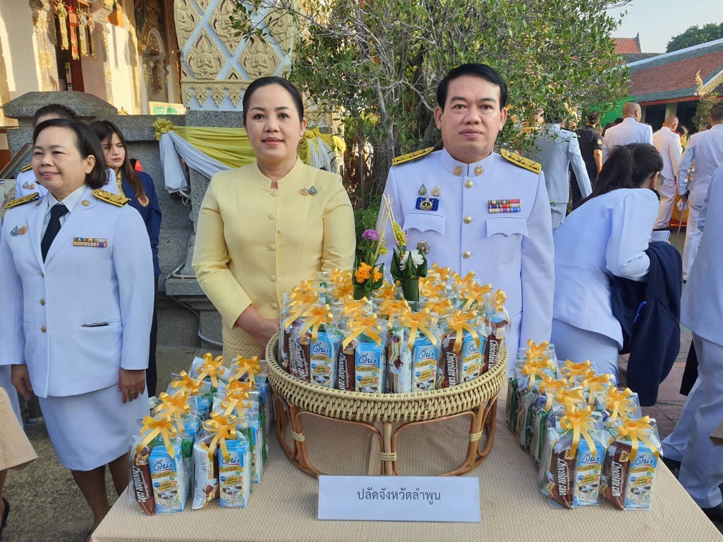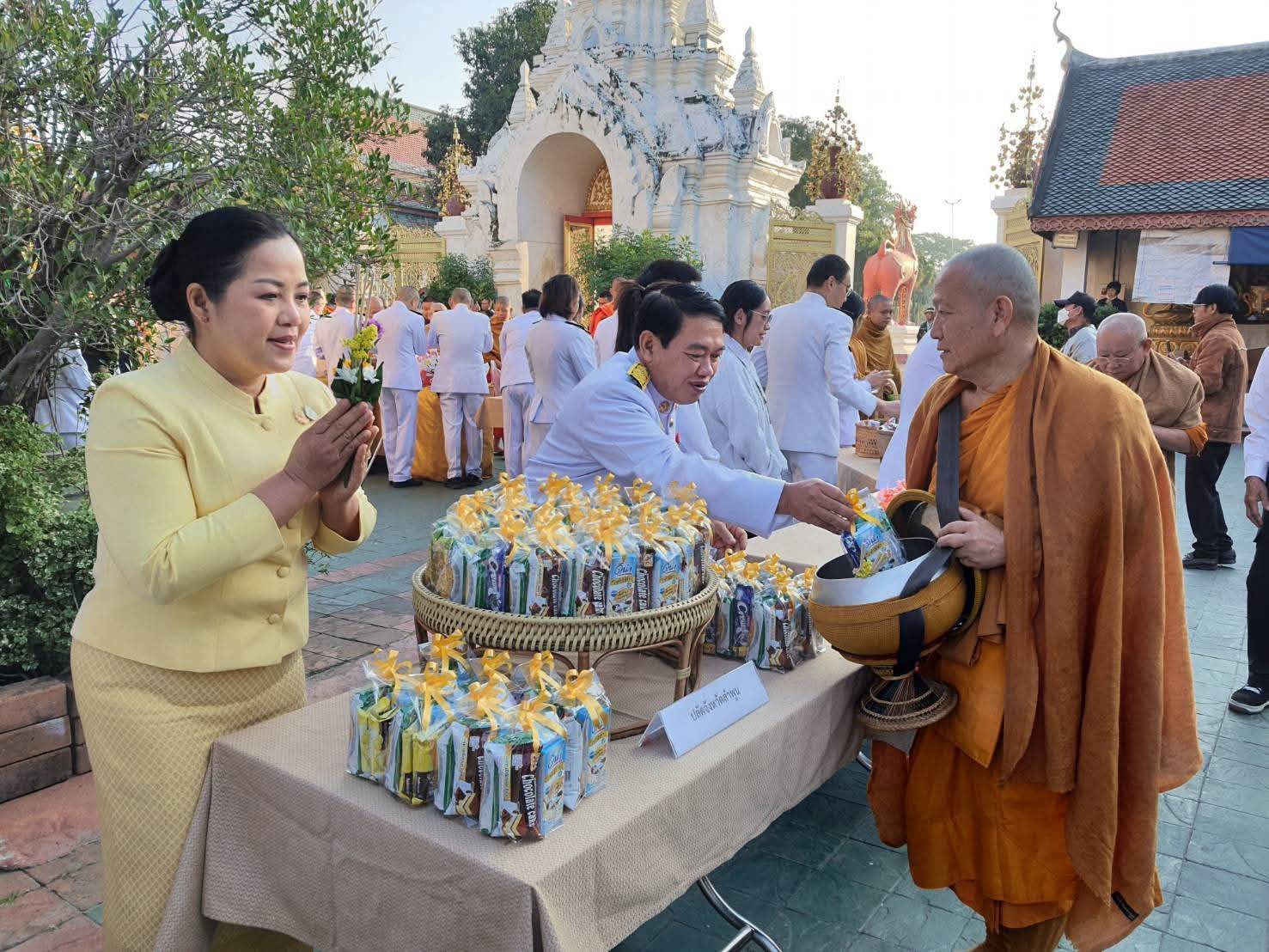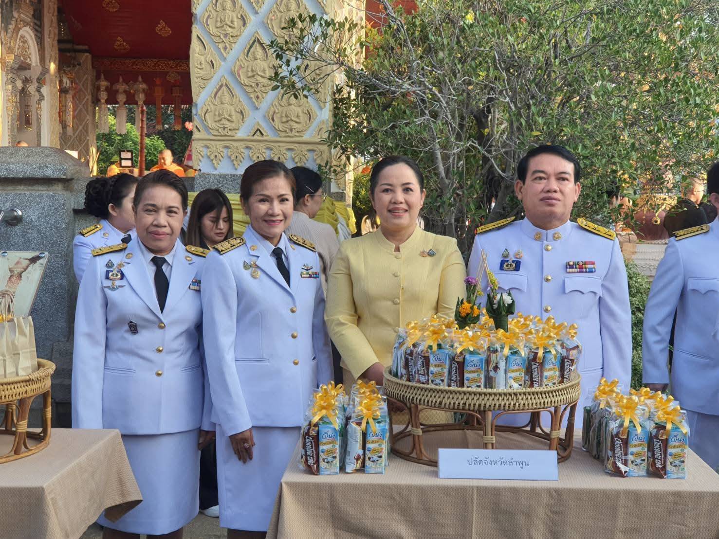 ลำดับถัดมา ผู้ว่าราชการจังหวัดลำพูน พร้อมผู้ร่วมพิธีฯ ร่วมทำบุญตักบาตร พระสงฆ์และสามเณร จำนวน 73 รูป ถวายพระราชกุศล เป็นอันเสร็จพิธีฯ