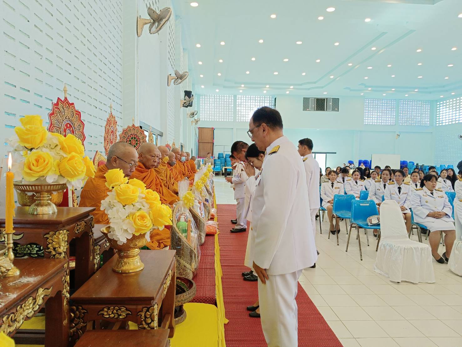 พ.ต.อ.สมภพ สุภาพร ผกก.สภ.แจ้ห่ม จ.ลำปาง พร้อมด้วยข้าราชการตำรวจ สภ.แจ้ห่ม จ.ลำปาง เข้าร่วมพิธีเฉลิมพระเกียรติพระบาทสมเด็จพระเจ้าอยู่หัว เนื่องในโอกาสพระราชพิธีสมมงคลพระชนมายุเท่าพระบาทสมเด็จพระพุทธยอดฟ้าจุฬาโลกมหาราช สมเด็จพระปฐมบรมกษัตริยาธิราชแห่งพระราชวงศ์จักรีพุทธศักราช 2568 ณ หอประชุมอำเภอแจ้ห่ม โดยมีนายชาญ จูดคง นายอำเภอแจ้ห่มเป็นประธาน