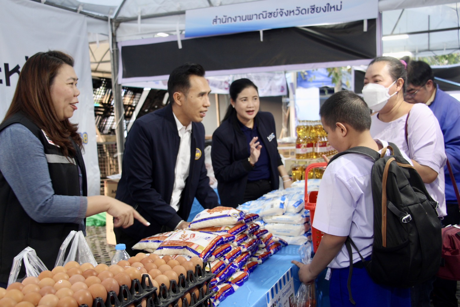 เย็นวันนี้ (14 ม.ค. 68) นายนิรัตน์ พงษ์สิทธิถาวร ผู้ว่าราชการจังหวัดเชียงใหม่ มอบหมายให้ นายวีรพงศ์ ฤทธิ์รอด รองผู้ว่าราชการจังหวัดเชียงใหม่ พร้อมด้วย นางโสพิตย์ ฤทธิศร นักวิชาการพาณิชย์ชำนาญการพิเศษ สำนักงานพาณิชย์จังหวัดเชียงใหม่ นางศิริน รือเรือง ผู้อำนวยการกลุ่มงานศูนย์ดำรงธรรมจังหวัดเชียงใหม่ นำส่วนราชการและหน่วยงานที่เกี่ยวข้อง ร่วมกันลงพื้นที่ตรวจสอบราคาสินค้าของร้านค้าภายในงานฤดูหนาว นางสาวเชียงใหม่ และงาน OTOP ของดีเมืองเชียงใหม่ ประจำปี 2568 ที่ บริเวณด้านหลังศูนย์ราชการจังหวัดเชียงใหม่ เพื่อตรวจร้านค้าว่ามีการติดป้ายแสดงราคาสินค้าชัดเจนหรือไม่ ป้องกันร้านค้าฉวยโอกาสขึ้นราคาสินค้า และจำหน่ายสินค้าในราคาแพงเกินควร ป้องกันไม่ให้ผู้บริโภคถูกเอารัดเอาเปรียบทางด้านราคา