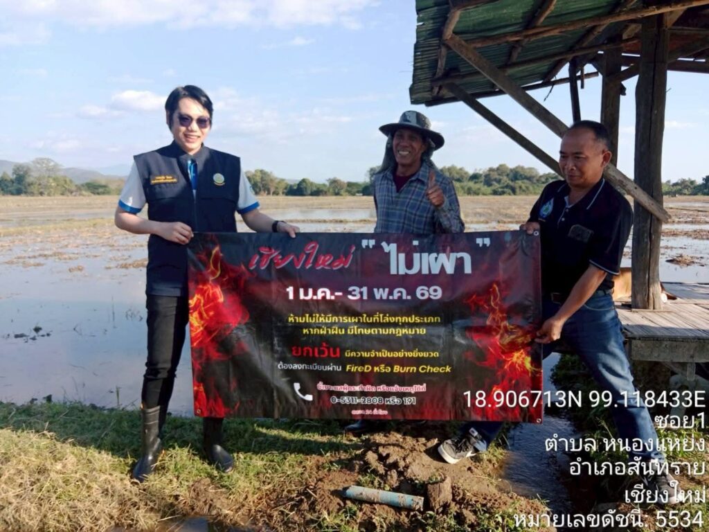 ลงพื้นที่ประชาสัมพันธ์และให้การสนับสนุนการปฏิบัติหน้าที่ตามมาตราการป้องกันและแก้ไขปัญหาการเผาในพื้นที่เกษตรกรรม ส่งเสริมไถกลบตอซัง (คือการนำตอซังและฟางข้าวกลับคืนสู่ดินเพื่อบำรุงดิน) ลดการเผา ช่วยฟื้นฟูบำรุงดินและเพื่อลดปัญหาฝุ่นละอองขนาดเล็กไม่เกิน 2.5 ไมครอน (PM 2.5) ในเขตพื้นที่ชลประทานของจังหวัดเชียงใหม่ เพื่อให้การแก้ไขปัญหาได้อย่างมีประสิทธิภาพทันต่อสถานการณ์ ลดการปล่อยก๊าซเรือนกระจก และขับเคลื่อนการแก้ไขปัญหาฝุ่น PM 2.5 ที่เกิดขึ้นในทุกปีให้ลดลง