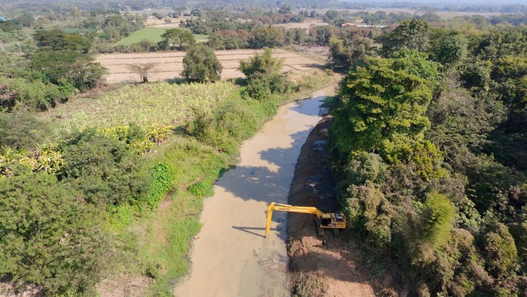 เชียงใหม่-โครงการส่งน้ำและบำรุงรักษาแม่กวงอุดมธารา ลงพื้นที่ร่วมกับองค์การบริหารส่วนจังหวัดเชียงใหม่ และเทศบาลตำบลหนองแหย่ง ติดตามการขุดลอกคลองและกำจัดวัชพืชในลำน้ำกวง บริเวณสะพานข้ามลำน้ำกวง กม.4+500 ถึง กม.6+000 บ้านร้อง หมู่ที่ 2 ตำบลหนองแหย่ง อำเภอสันทราย จังหวัดเชียงใหม่