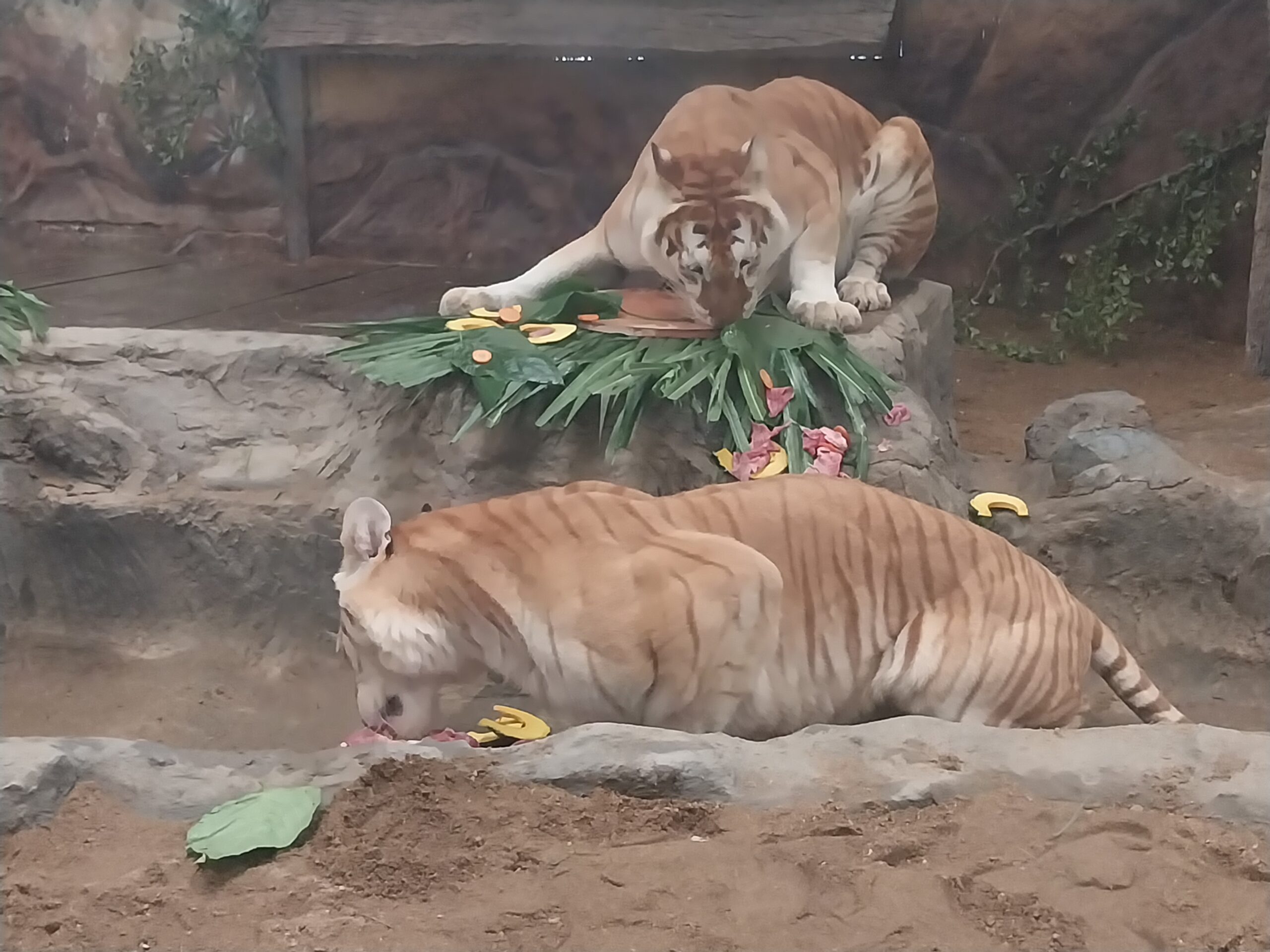 “น้องเอวาและพี่ลูน่า” เป็นเสือโคร่งทอง (Golden tabby tiger) เกิดเมื่อวันที่ 16 กุมภาพันธ์ 2564 เป็น เสือหายากที่ติดอันดับสัตว์หายากที่สุดในโลก เนื่องจากน้องจะมีสีที่หาได้ยาก ซึ่งเกิดขึ้นจากยืนด้อยที่ทำหน้าที่ เกี่ยวกับสีของขนบนร่างกายเช่นเดียวกับเสือสีขาว แต่โอกาสที่จะเกิดเสือโคร่งสีทองเช่นนี้จะมีโอกาสเกิดขึ้นได้ยาก มาก ๆ และพบเพียง 50 ตัวในโลก โดยพบเฉพาะในสวนสัตว์และศูนย์ขยายพันธุ์ทั่วโลกเท่านั้น ไม่พบในธรรมชาติ เสือโคร่งสีทองเป็นเสือที่ฉลาด แต่นอกจากความฉลาดนี้แล้ว “น้องเอวาและพี่ลูน่า” ยังขึ้นชื่อในเรื่องความน่ารัก ความแบ๊ว และรักสะอาด จนได้ฉายาว่าเป็นคุณหนูติดแกลม คุณหนูสายแบ๊ว และเป็นที่รักของทุก ๆ คน