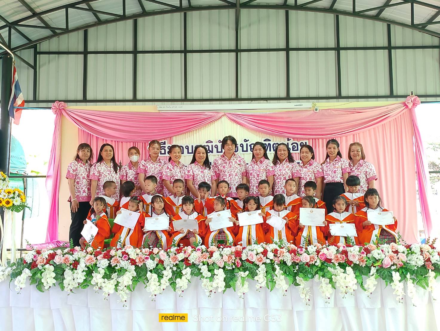 รักษาการในตำแหน่ง ผู้อำนวยการศูนย์พัฒนาเด็กเล็ก เทศบาลตำบลบ้านถิ่น พร้อมคณะครูเจ้าหน้าที่ศูนย์พัฒนาเด็กเล็ก เทศบาลตำบลบ้านถิ่น