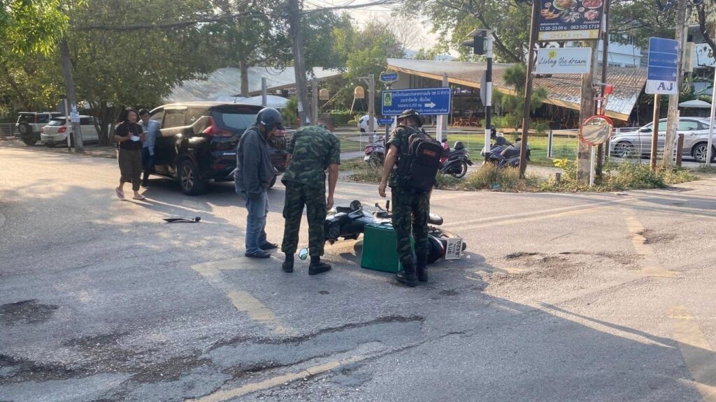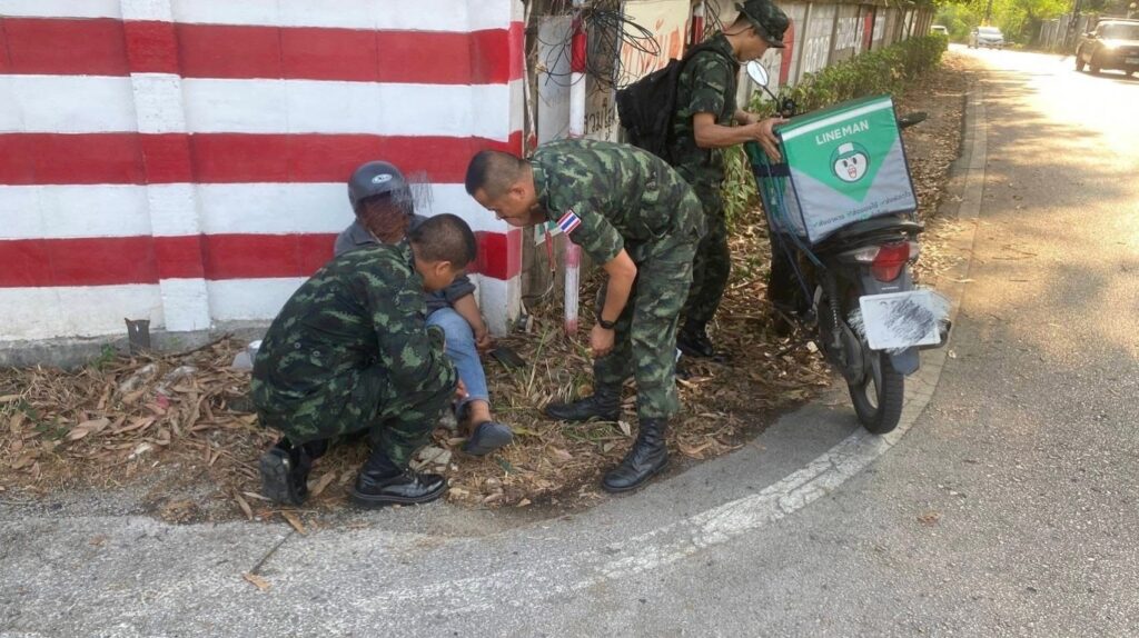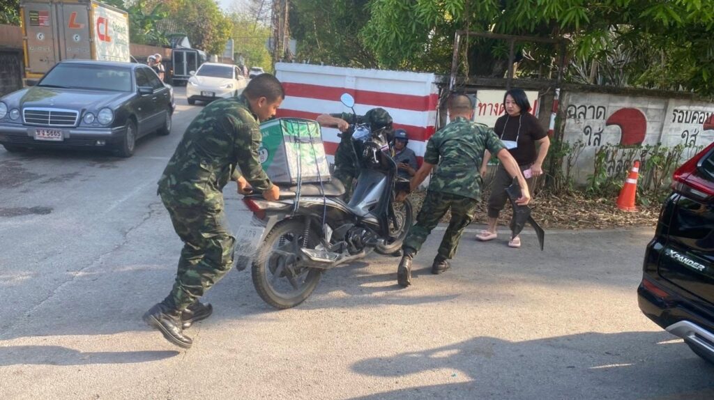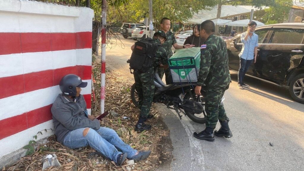 เชียงใหม่-“ทำความดี ด้วยหัวใจทหารเพื่อประชาชน” จิตอาสา มณฑลทหารบกที่ 33 ช่วยเหลือ คนขับรถส่งอาหาร ประสบอุบัติเหตุ