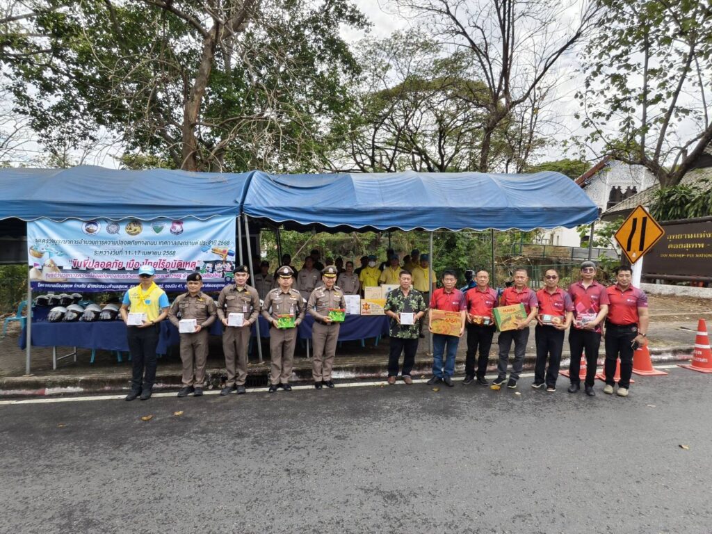 ทั้งนี้ ผบก.ภ.จว.เชียงใหม่ ยังได้มอบหมวกนิรภัยให้แก่ประชาชนผู้ใช้รถใช้ถนนภายใต้โครงการ “จิตอาสาจราจร” เพื่อรณรงค์และป้องกันอุบัติเหตุทางถนนในช่วงเทศกาล รวมถึงมอบสิ่งของเพื่อสนับสนุนและสร้างขวัญกำลังใจแก่เจ้าหน้าที่ประจำจุดบริการประชาชน