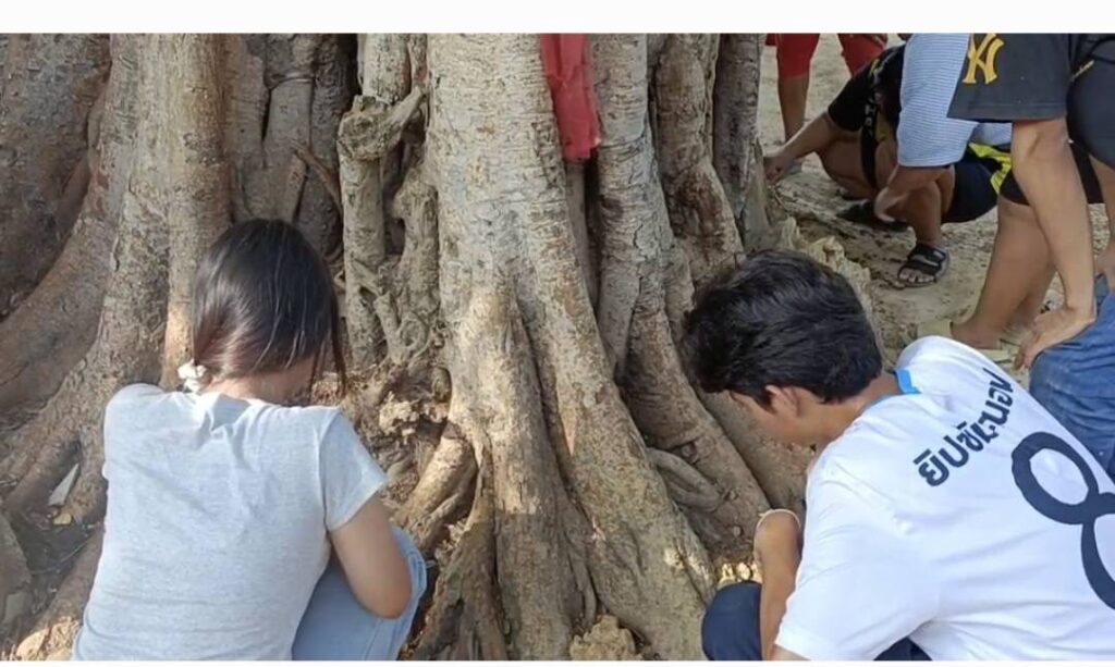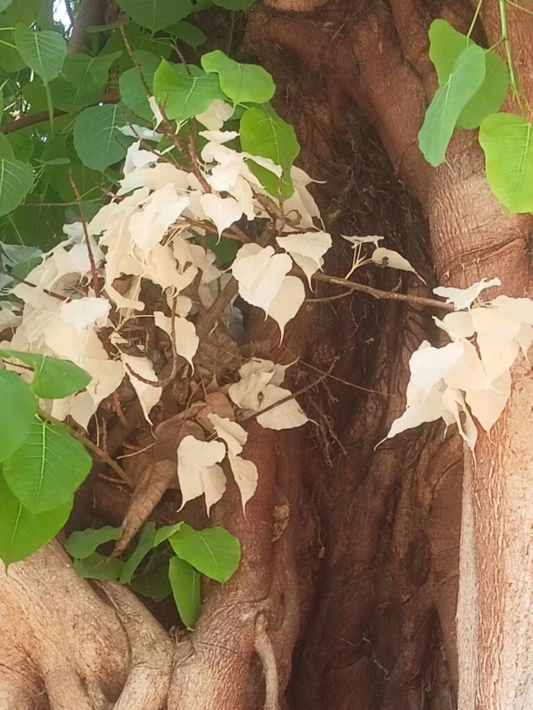 สุโขทัย-ที่พึ่งทางใจเลขเด็ดงวดนี้ พบต้นโพธิ์ใบสีขาวบริสุทธิ์ งอกใต้ต้นโพธิ์ใหญ่ที่ศรีสัชนาลัย