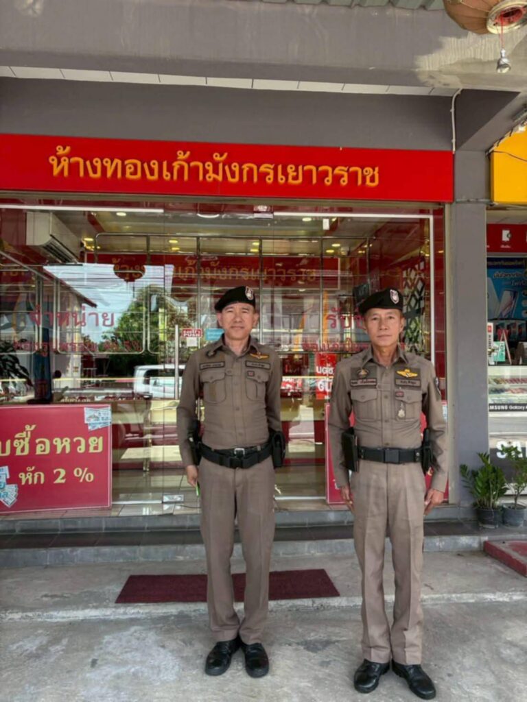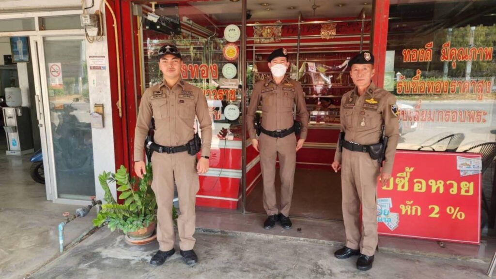 ร.ต.ต.ปราโมท ผ่านภพ ,ร.ต.ต.กฤต ขาวนา ส.ต.ท. วันเฉลิม ยะแก้ว สายตรวจรถยนต์ ออกตรวจ ร้านทอง จุดเสี่ยงและจุดล่อแหลมในพื้นที่รับผิดชอบ