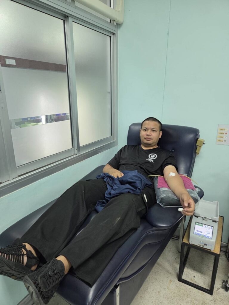 มาบริจาคเลือดให้กับ นายชัยพินธ์ ขัติยะ อายุ 68 ปี (พี่อ้อนไทยรัฐ) สื่อมวลชนอาวุโส ซึ่งเป็นผู้ป่วยไตวายเฉียบพลัน ต้องเข้ารับการผ่าตัดและเติมเลือดอย่างเร่งด่วน