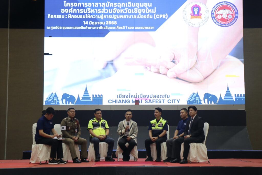 วันนี้ (14 มิ.ย. 68) ที่ศูนย์ประชุมและแสดงสินค้านานาชาติฯ จังหวัดเชียงใหม่ นายนิรัตน์ พงษ์สิทธิถาวร ผู้ว่าราชการจังหวัดเชียงใหม่ มอบหมายให้ นายวีรพงศ์ ฤทธิ์รอด รองผู้ว่าราชการจังหวัดเชียงใหม่ เป็นประธานเปิดโครงการส่งเสริมความรู้อาสาสมัครฉุกเฉินชุมชน ที่องค์การบริหารส่วนจังหวัดเชียงใหม่และมหาวิทยาลัยราชภัฏเชียงใหม่ ร่วมกันจัดขึ้นโดยเปลี่ยนรูปแบบการรับน้องนักศึกษาใหม่ เป็นการทำกิจกรรมฝึกอบรมให้ความรู้การปฐมพยาบาลเบื้องต้น (CPR)