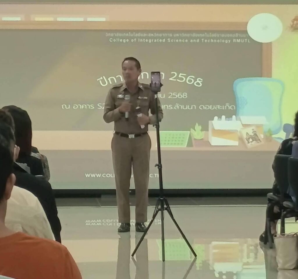 พ.ต.อ.ศุภชัย จันทรา ผกก.สภ.ดอยสะเก็ด มอบหมายให้ ร.ต.ต.กริชชานนท์ ทานัน รอง สว.(ป.) สภ.ดอยสะเก็ดปฎิบัติหน้าที่เป็นวิทยากรบรรยายให้ความรู้กลุ่มผู้ปกครองของนักศึกษามหาวิทยาลัยเทคโนโลยีราชมงคลล้านนา ในหัวข้อ ” บุหรี่ไฟฟ้า และคอลเซนเตอร์ ” จำนวนผู้รับฟัง 350 คน