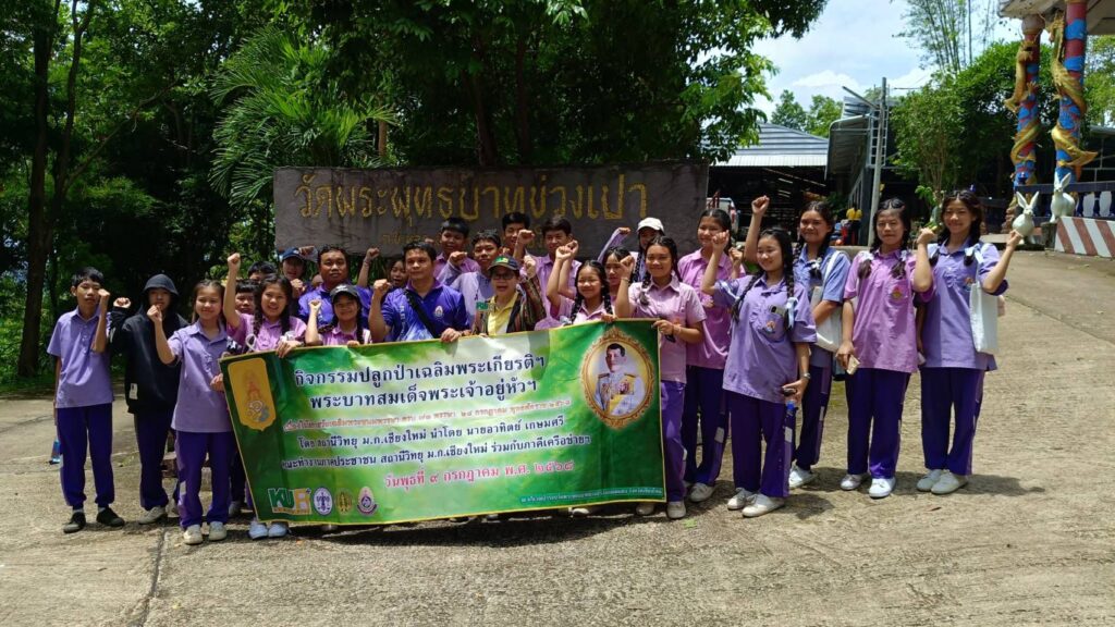 เมื่อวันที่ 14 ก.ค.68 ผศ.อนุพร สุวรรณวาจกกสิกิจ ผู้อำนวยการใหญ่สถานีวิทยุม.ก.,รักษาการผู้อำนวยการสถานีวิทยุ ม.ก.เชียงใหม่ เผยว่า ได้มอบหมายทีมงานสถานีวิทยุ ม.ก.เชียงใหม่ ร่วมกับคณะทำงานภาคประชาชนสถานีวิทยุ ม.ก.เชียงใหม่ นำโดย นายอาทิตย์ เกษมศรี คณะทำงานภาคประชาชนฯ สำนักงานคุมประพฤติจังหวัดเชียงใหม่ ศูนย์เพาะชำกล้าไม้เชียงใหม่ สภาเกษตรกรจังหวัดเชียงใหม่และภาคีเครือข่ายฯ จัดกิจกรรมจิตอาสาร่วมกันปลูกป่าเฉลิมพระเกียรติ พระบาทสมเด็จพระเจ้าอยู่หัว เนื่องในโอกาสมหามงคลเฉลิมพระชนมพรรษา ครบ 73 รอบ 28 กรกฎาคม 2568 ณ บริเวณป่าชุมชนรอบวัดพระพุทธบาทข่วงเปา หมู่ที่ 9 บ้านห้วยไร่ ตำบลขี้เหล็ก อำเภอแม่แตง จังหวัดเชียงใหม่