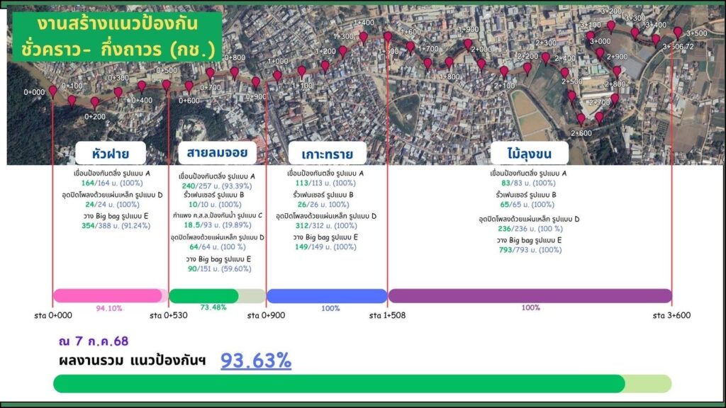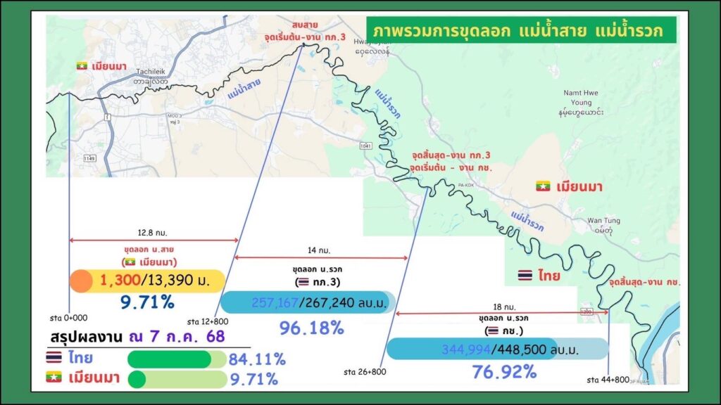 นอกจากนี้กองทัพบกยังได้ให้ความสำคัญในการแก้ไขปัญหาอุทกภัยในพื้นที่ภาคเหนือในระยะยาว สอดคล้องตามนโยบายของรัฐมนตรีช่วยว่าการกระทรวงกลาโหม โดยตั้งแต่เดือน เม.ย.68 ได้มอบหมายให้กรมการทหารช่าง และกองพลพัฒนาที่ 3 เร่งดำเนินการปรับปรุงพื้นที่ ขุดลอกแม่น้ำสายและแม่น้ำรวก รวมทั้งสร้างแนวป้องกันชั่วคราว-กึ่งถาวร บริเวณชุมชนบ้านหัวฝาย, บ้านสายลมจอย, บ้านเกาะทราย และบ้านไม้ลุงขน จ.เชียงราย เพื่อเพิ่มความสามารถในการระบายน้ำ และป้องกันผลกระทบจากสถานการณ์อุทกภัยในพื้นที่ภาคเหนืออย่างยั่งยืน ซึ่งมีแผนเร่งดำเนินการให้แล้วเสร็จภายใน ก.ค.68 นี้