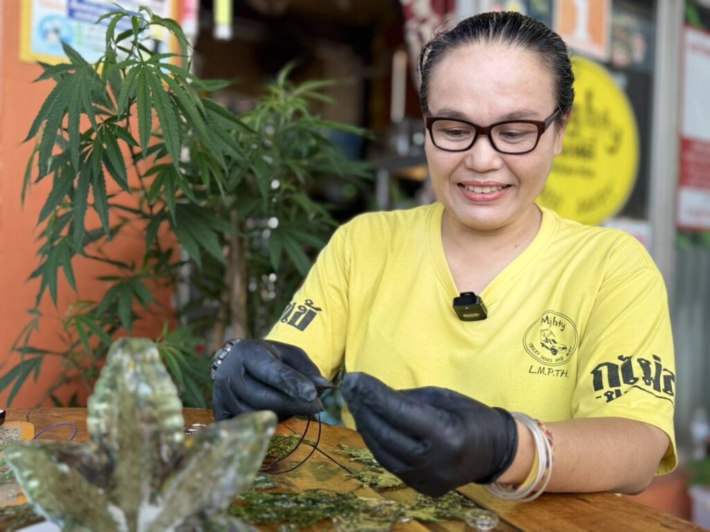 แม่ค้าสายเขียวปิ๊งไอเดียทำสินค้าที่ระลึกจากพืชกัญชา สร้างจุดขายต่อยอดรายได้ช่วงกระแสกำลังป่วน