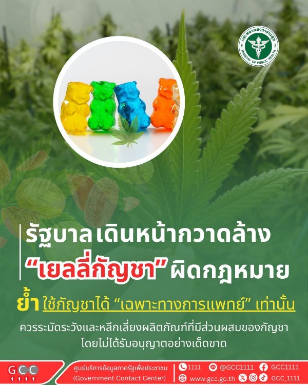 รัฐบาล เดินหน้ากวาดล้าง “เยลลี่กัญชา” ผิดกฎหมาย ย้ำชัด! ใช้กัญชาได้เฉพาะทางการแพทย์เท่านั้น