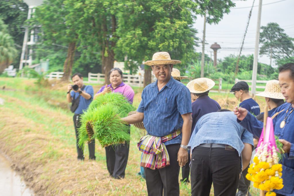 ภายในงาน นายบุญฤทธิ์ สโมสร กล่าวเปิดโครงการและบรรยายให้ความรู้เกี่ยวกับการปลูกข้าวแบบ นาโยน ซึ่งช่วยลดการใช้แรงงานและเพิ่มประสิทธิภาพการเพาะปลูก จากนั้นได้จัดพิธีขอขมาพระแม่โพสพและพระแม่ธรณี ตามขนบธรรมเนียมไทย เพื่อแสดงความกตัญญูต่อธรรมชาติ ก่อนร่วมกันโยนต้นกล้าข้าวลงแปลงนา โดยการปลูกครั้งนี้จัดขึ้นภายใต้แนวคิด “จากวันแม่สู่วันพ่อ” เพื่อเป็นสัญลักษณ์ของความต่อเนื่องและความผูกพันระหว่างคนกับผืนดิน โดยจะเก็บเกี่ยวผลผลิตในเดือนธันวาคม 2568