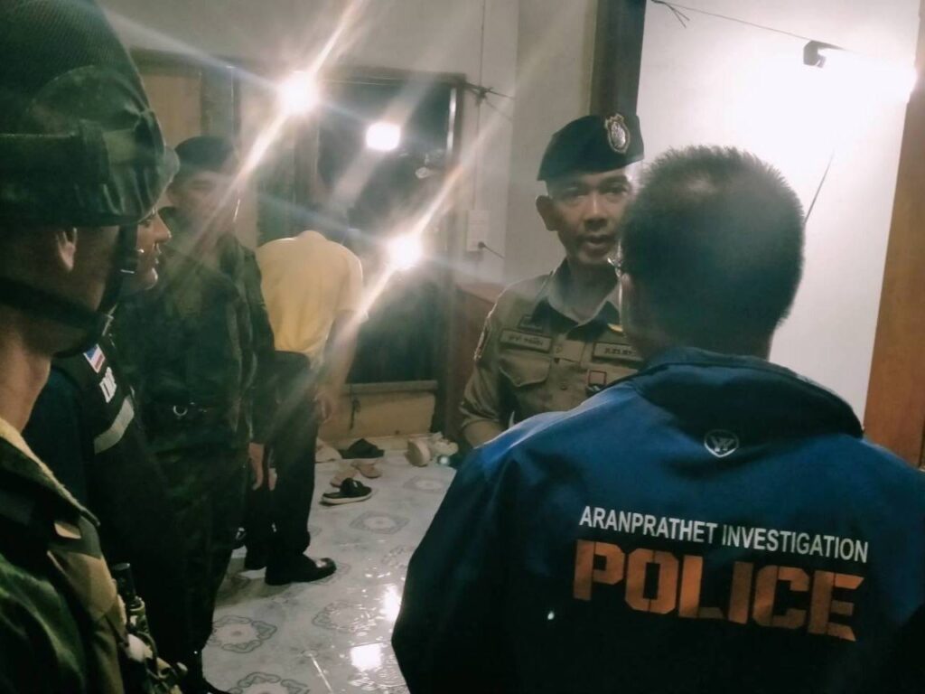 ทั้งนี้ เหตุการณ์ดังกล่าว จากการสอบถามเบื้องต้นผู้เสียหายทั้งหมดให้การตรงกันว่า ได้สมัครงานผ่านเพจหางานในสื่อสังคมออนไลน์ โดยมีการโฆษณาชักชวนให้ไปทำงานในประเทศกัมพูชา ระบุรายได้เดือนละประมาณ 20,000 – 25,000 บาท ด้วยความอยากมีงานทำจึงโทรติดต่อไปยังเบอร์ที่ปรากฏแล้วนัดหมายจุดนัดพบ โดยทั้งหมดเดินทางไปถึง อ.อรัญประเทศ ในช่วงบ่ายถึงค่ำ จากนั้นได้มีชายไทยไม่ทราบชื่อ ขับรถกระบะมารับจากจุดนัดหมายต่าง ๆ เช่น สถานีขนส่งผู้โดยสารอรัญประเทศ และสถานีรถไฟอรัญประเทศ ก่อนพามาพักรวมกันที่บ้านหลังดังกล่าว โดยอ้างว่ารอเดินทางข้ามไปทำงานที่ฝั่งกัมพูชา ซึ่งในระหว่างรอได้มีผู้เสียหายคนหนึ่งเกิดความสงสัยว่าเมื่อไปถึงกัมพูชาแล้วจะได้ทำงานจริงหรือไม่ และเกรงว่าจะถูกหลอกไปทำงานผิดกฎหมาย โดยคาดว่าจะถูกหลอกไปทำงานเป็นแก๊งคอลเซ็นเตอร์ จึงโทรศัพท์ติดต่อญาติให้แจ้งขอความช่วยเหลือจากเจ้าหน้าที่ตำรวจ จากนั้นเจ้าหน้าที่ตำรวจได้ประสานกับทหารกองกำลังบูรพาเข้าให้การช่วยเหลือได้ทัน ก่อนทั้งหมดจะถูกพาออกนอกพื้นที่ ส่วนเจ้าของบ้านหลังดังกล่าวไหวตัวหลบหนีไปก่อนเจ้าหน้าที่จะถึงจุดเกิดเหตุ เบื้องต้นได้สอบถามปากคำผู้เสียหายทั้งหมดไว้เป็นพยาน เพื่อรวบรวมข้อมูลประกอบการสืบสวนและติดตามหาตัวผู้กระทำผิด รวมถึงผู้ร่วมขบวนการ มาดำเนินคดีตามกฎหมายต่อไป
