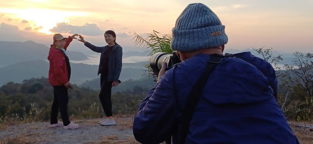 เช้าวันที่ 14 ธ.ค.68 ผู้สื่อข่าวรายงานบรรยากาศการท่องเที่ยวในอำเภออุ้มผาง จังหวัดตาก คึกคักตั้งแต่ช่วงเช้ามืด หลังนักท่องเที่ยวจำนวนมากจากทั้งในพื้นที่และต่างจังหวัด ทยอยเดินทางขึ้นดอยหัวหมด จุดชมวิวกิโลเมตรที่ 13 เพื่อรอชมพระอาทิตย์ขึ้นและสัมผัสทะเลหมอกยามเช้าที่ปกคลุมผืนป่าและแนวเทือกเขาสลับซับซ้อนอย่างสวยงาม ท่ามกลางอากาศหนาวเย็นและบรรยากาศเงียบสงบ สร้างความประทับใจให้กับนักท่องเที่ยวเป็นอย่างมาก