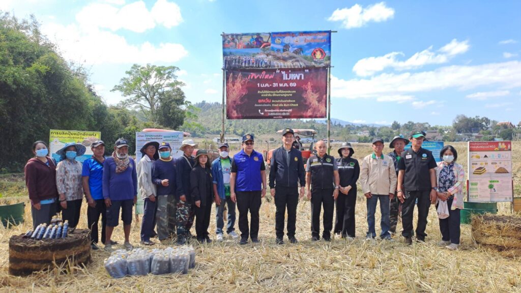โดยกิจกรรมในวันนี้ รองผู้ว่าราชการจังหวัดเชียงใหม่ ได้นำทีมนายอำเภออมก๋อย เกษตรจังหวัดเชียงใหม่ ทสจ.จังหวัดเชียงใหม่ ขึ้นรถไถ ไถกลบตอซังข้าว เพื่อเป็นการประกาศเชิงสัญลักและสร้างความเชื่อมั่นให้กับเกษตรกร พร้อมทั้งได้บูรณาการร่วมกับมูลนิธิเจริญโภคภัณฑ์พัฒนาชีวิตชนบท แจกน้ำหมักชีวภาพ พด.2 ให้แก่เกษตรกร เพื่อนำไปเป็นหัวเชื้อในการทำปุ๋ยหมักชีวภาพต่อไป