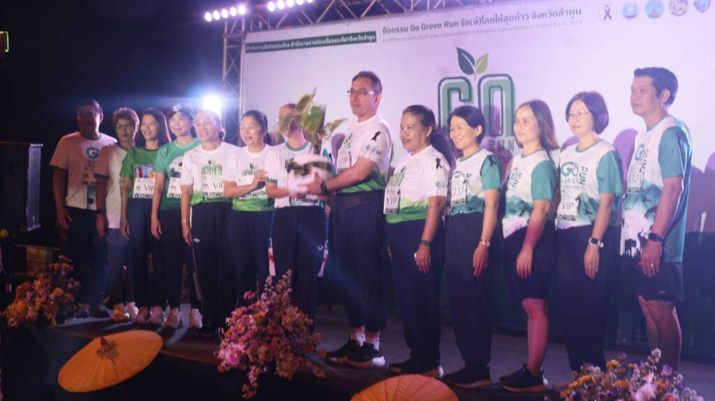 ลำพูน – สำนักงานการท่องเที่ยวและกีฬาจังหวัดลำพูน ร่วมกับภาคีเครือข่ายและหน่วยงานต่างๆ ได้ดำเนินการจัดกิจกรรมวิ่ง Go Green Run “รัก(ษ์)โลกให้สุดก้าว” เพื่อส่งเสริมให้ประชาชนทุกกลุ่มออกกำลังกายและเล่นกีฬาอย่างสม่ำเสมอจนเป็นวิถีชีวิต สร้างค่านิยมการออกกำลังกายที่รับผิดชอบต่อโลกและชุมชน