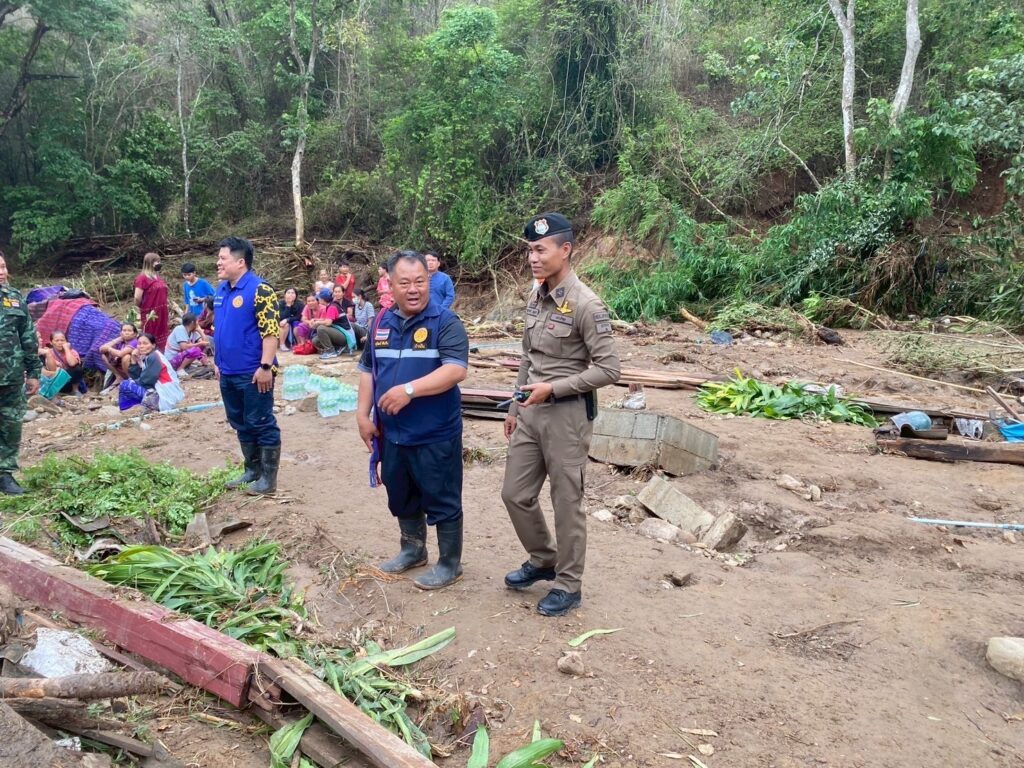 ลำพูน-สภ.ทากาศ พร้อมหน่วยงานที่เกี่ยวข้อง ตรวจเยี่ยมช่วยเหลือผู้ประสบภัยน้ำป่าไหลหลาก บ้านห้วยฮ้อมนอก ต.ท่าแม่ลอบ อ.แม่ทา จว.ลำพูน