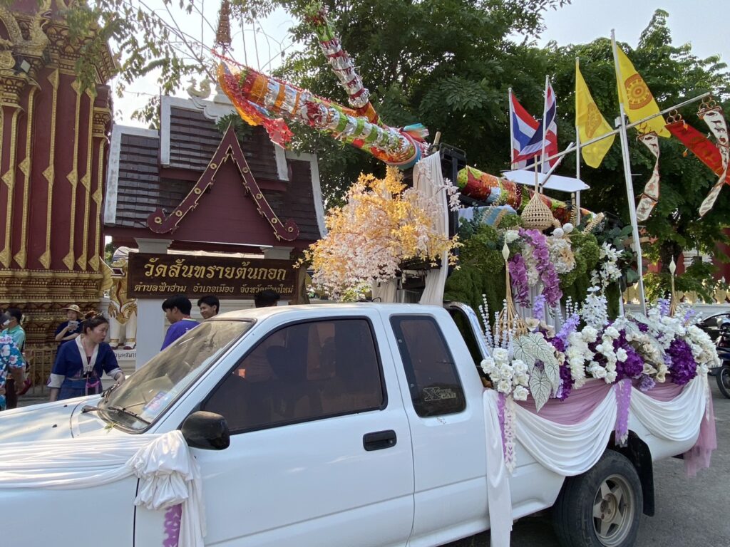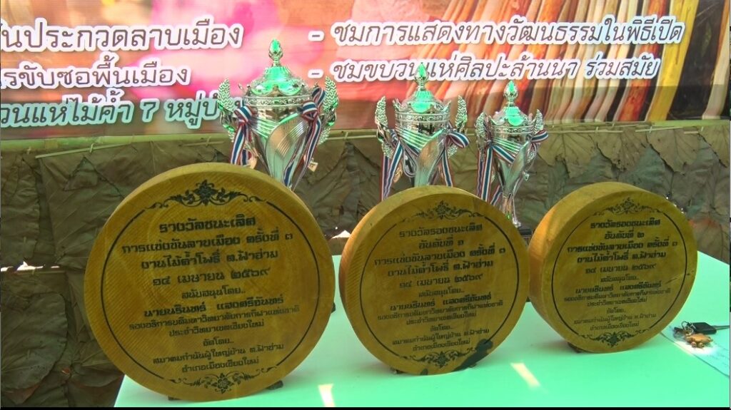 (มีคลิป)เชียงใหม่-ชมรมกำนันผู้ใหญ่บ้านฟ้าฮ่ามจัดแห่ไม้ค้ำสะหลี