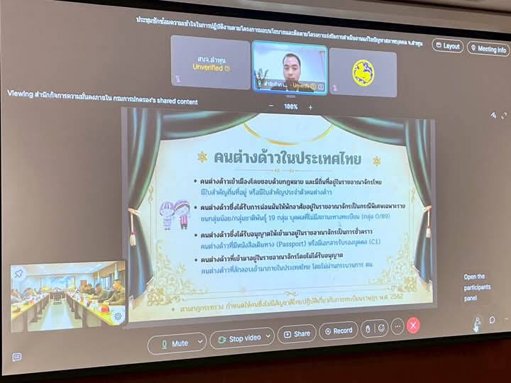 การประชุมดังกล่าว เพื่อให้ผู้ปฏิบัติงานในระดับจังหวัดและอำเภอทราบถึงแนวทางการให้สถานะคนต่างด้าวเข้าเมืองโดยชอบด้วยกฎหมายฯ ตามมาตร 17 แห่ง พ.ร.บ.คนเข้าเมือง พ.ศ.2522 ซึ่งกำหนดโดยมติ ครม.เมื่อวันที่ 29 ตุลาคม 2567 รวมไปถึงเพื่อให้ทราบถึงหลักเกณฑ์การแก้ไขปัญหา และมีความรู้ความเข้าใจในขั้นตอนการปฏิบัติงานที่ถูกต้อง และเป็นไปในแนวทางเดียวกัน ในการนี้ได้มีวิทยากรจาก สำนักกิจการความมั่นคงภายใน (สน.มน.) กรมการปกครอง ได้ให้บรรยายเพื่อซักซ้อมความเข้าใจในแนวทางการปฏิบัติงาน โดยกลุ่มเป้าหมายที่ทางมติ ครม. ได้กำหนด คือ บุคคลที่อพยพเข้ามาอยู่ในไทย อาศัยอยู่เป็นเวลานาน ได้แก่ 1.) ชนกลุ่มน้อย 19 กลุ่ม 2.) เด็กนักเรียน/จบการศึกษาแล้ว 3.) คนไร้รากเหง้า และ 4.) บุคคลที่ทำคุณประโยชน์