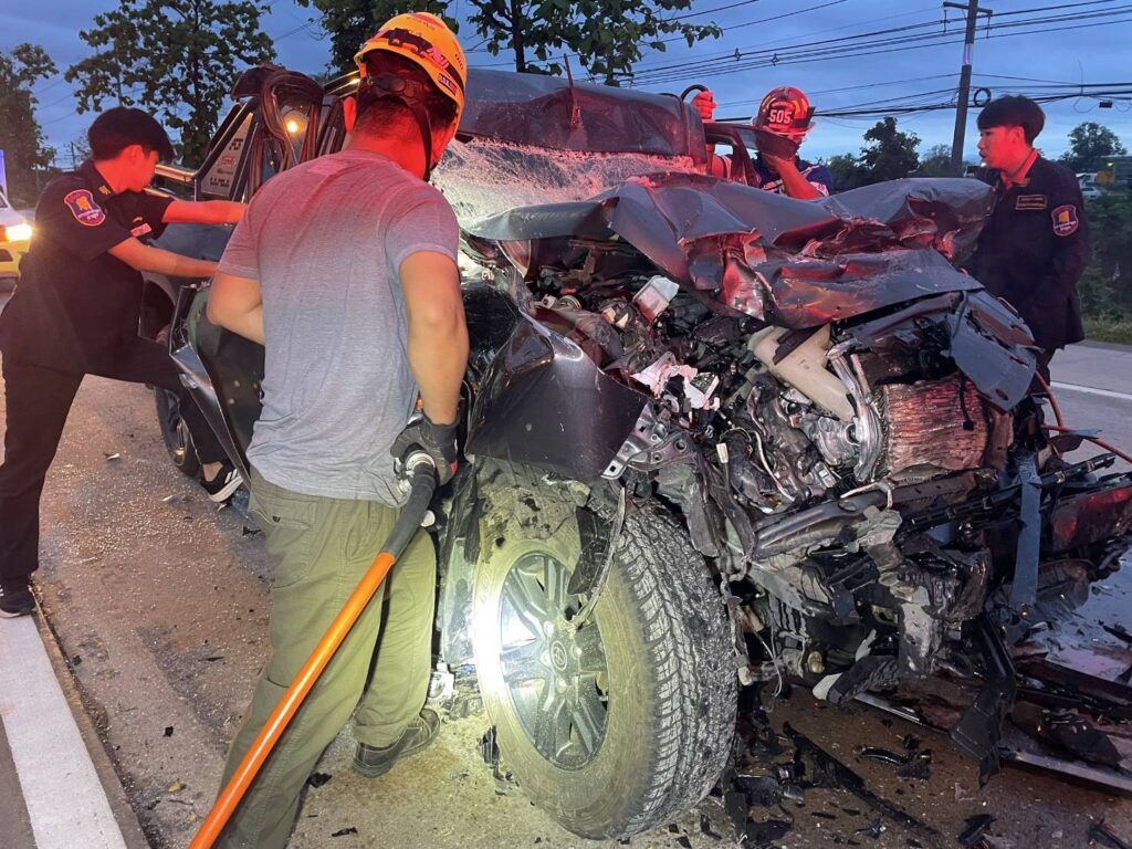 ผู้โดยสารรถยนต์ บาดเจ็บสาหัส และ เสียชีวิต ที่ รพ.ลำพูนใกล้หมอ