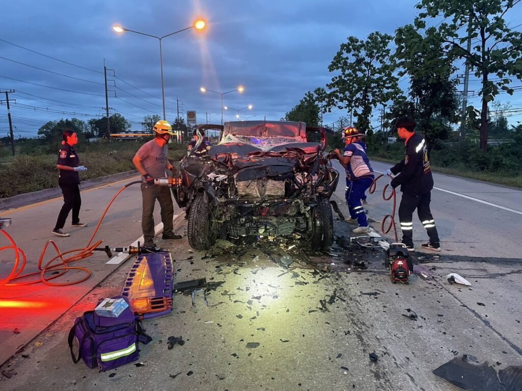 ลำพูน-รับแจ้งเหตุ รถยนต์ ชนท้ายรถบรรทุกพ่วง