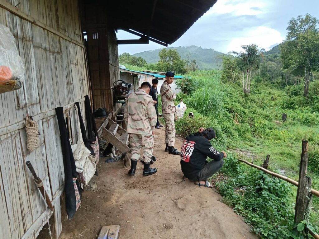 เมื่อวันศุกร์ที่ 15 สิงหาคม 2568 เวลา 16.00 น. นายวีระกิตติ์ การดื่ม ปลัดหัวหน้ากลุ่มงานบริหารงานปกครอง รักษาราชการแทนนายอำเภอแม่วาง ได้นำกำลังเจ้าหน้าที่ฝ่ายปกครอง ประกอบด้วยปลัดอำเภอฝ่ายความมั่นคง,กำนัน นายจีระ กิจทรัพย์พัฒนา ผู้ใหญ่บ้านหมู่4 บ้านหนองต่า , ชุด ชรบ. ตำบลแม่วิน และสมาชิก อส. ร้อย.อส.อ.แม่วาง ที่ 23 บูรณาการร่วมกับเจ้าหน้าที่ตำรวจ สภ.แม่วาง และเจ้าหน้าที่สาธารณสุข