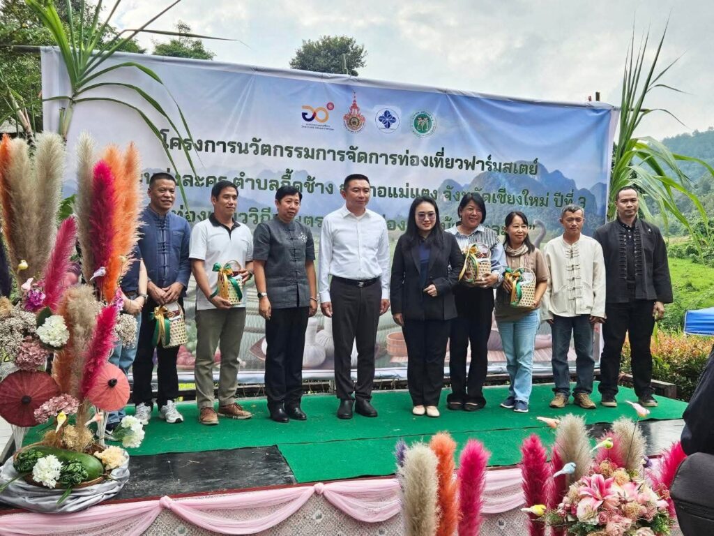 เมื่อวันที่ 15 พฤศจิกายน 2568 เวลา 09:30 น. นายจักรพันธุ์ ทองอ่ำ นายอำเภอแม่แตง เป็นประธานเปิดกิจกรรมการเชื่อมโยงเครือข่ายผู้ประกอบการท่องเที่ยว ชุมชนและคู่ค้าด้านการท่องเที่ยว “ท่องเที่ยววิถีเกษตร ชุมชนท่องเที่ยวบ้านทุ่งละคร” ภายใต้โครงการนวัตกรรมการจัดการท่องเที่ยวฟาร์มสเตย์ หมู่บ้านทุ่งละคร ปีที่ 3 โดยมี หัวหน้าส่วนราชการ ผู้ประกอบการท่องเที่ยวชุมชม คณะทำงานโครงการนวัตกรรมการจัดการท่องเที่ยวฟาร์มสเตย์ฯ และประชาชนในพื้นที่เข้าร่วมกิจกรรม ณ ทุ่งละครฟาร์ม บ้านทุ่งละคร ตำบลกื๊ดช้าง อำเภอแม่แตง จังหวัดเชียงใหม่