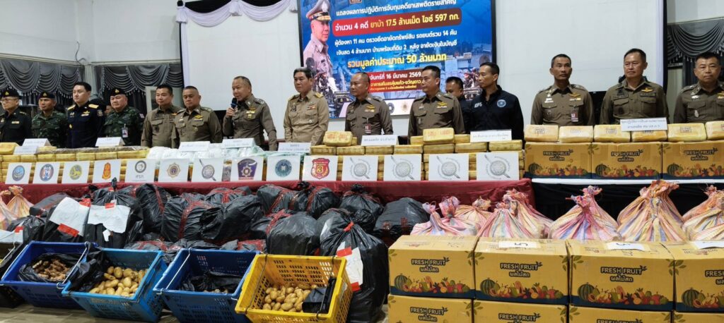 ปิดท้ายที่คดีที่ 4 เมื่อวันที่ 14 มีนาคม 2569 ณ ด่านตรวจยาเสพติด สภ.แม่พริก จ.ลำปาง เจ้าหน้าที่สกัดจับรถยนต์ 2 คันที่เป็นรถนำและรถขนยาเสพติด โดยกลุ่มคนร้ายพยายามขับรถวนหลบหนีด่านตรวจแต่ถูกติดตามจับกุมได้ในที่สุด ตรวจสอบภายในรถพบยาบ้าซุกซ่อน 6 กระสอบ รวม 1.53 ล้านเม็ด ผู้ต้องหาสารภาพว่าลำเลียงมาจาก อ.เวียงแก่น จ.เชียงราย เพื่อนำไปส่งที่ จ.พระนครศรีอยุธยา