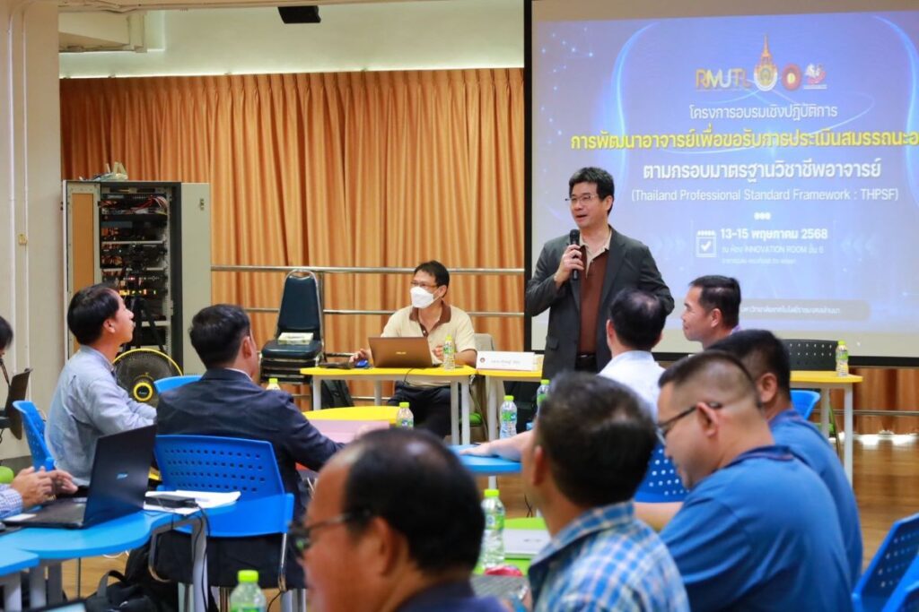 คณะวิศวกรรมศาสตร์ มหาวิทยาลัยเทคโนโลยีราชมงคลล้านนา จัดกิจกรรมสัมมนาเชิงปฏิบัติการหัวข้อ “การพัฒนาอาจารย์เพื่อขอรับการประเมินสมรรถนะอาจารย์ตามกรอบมาตรฐานวิชาชีพอาจารย์” (Thailand Professional Standards Framework : THPSF) ระหว่างวันที่ 13 – 15 พฤษภาคม 2568 ณ ห้อง Innovation Room ชั้น 6 อาคารเฉลิมพระเกียรติ 56 พรรษา โดยได้รับเกียรติจาก ผศ.ดร.กฤษฎา ยิ่งขยัน รองคณบดีฝ่ายวิชาการและกิจการนักศึกษา คณะวิศวกรรมศาสตร์ เป็นประธานในพิธีเปิดกิจกรรม