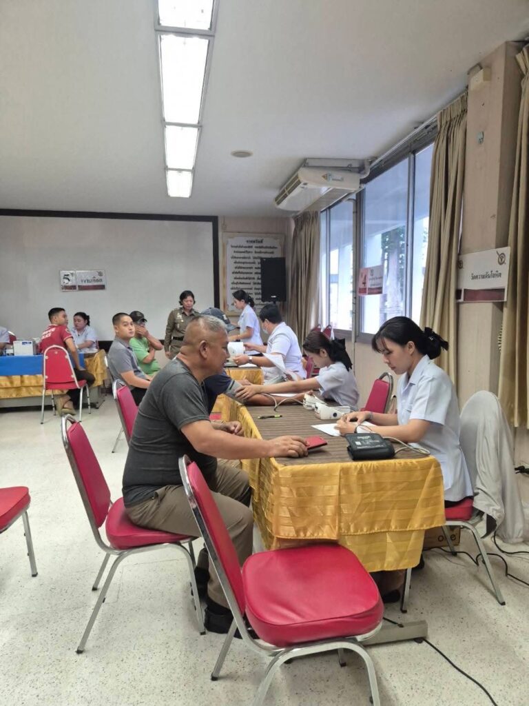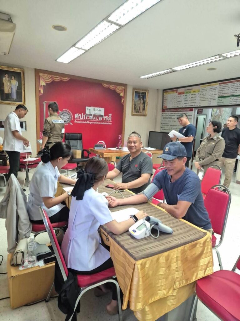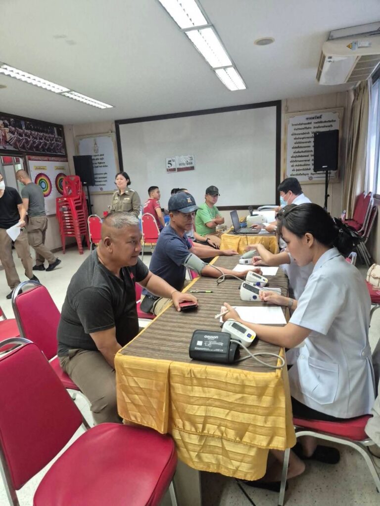 พร้อมด้วยข้าราชการตำรวจ สภ.สารภี รับการตรวจสุขภาพประจำปี 2568 พร้อมรับมอบกล่องยาปฐมพยาบาลจากโรงพยาบาลดารารัศมี
