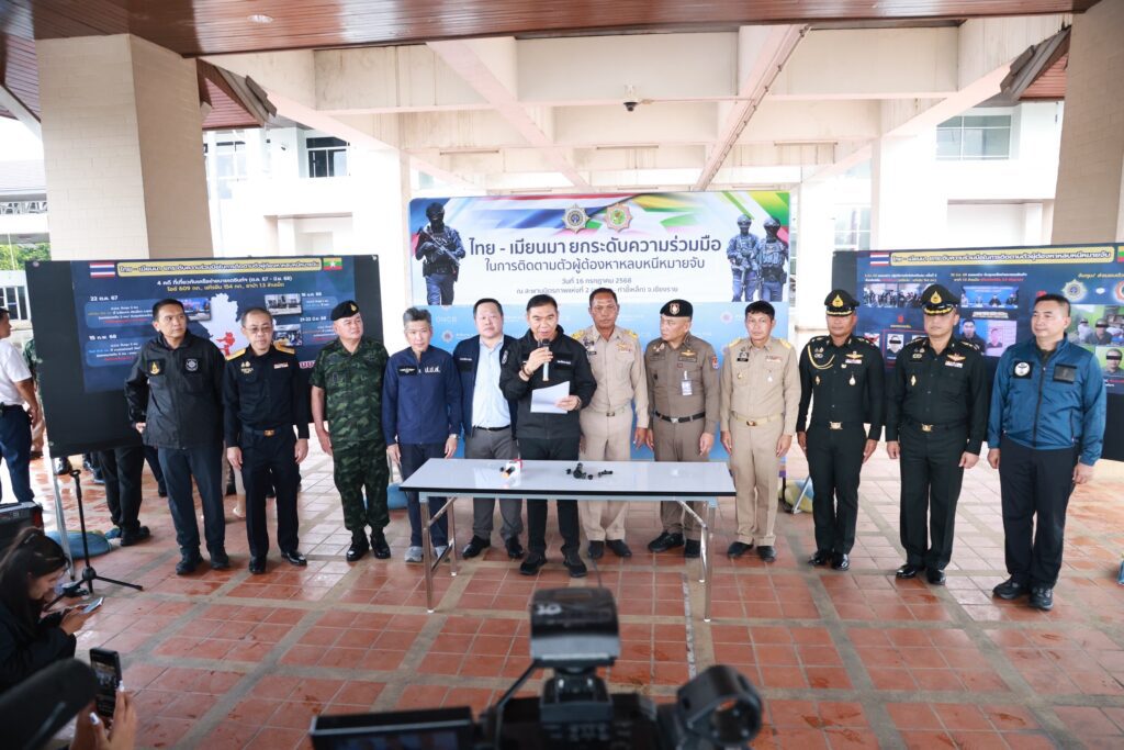 วันพุธที่ 16 กรกฎาคม 2568 พล.ต.ท.ภาณุรัตน์ หลักบุญ เลขาธิการ ป.ป.ส. พร้อมด้วย นายประสงค์ หล้าอ่อน รองผู้ว่าราชการจังหวัดเชียงราย นายอภิกิต ฉ.โรจน์ประเสริฐ รองเลขาธิการ ป.ป.ส. นายปฤณ เมฆานันท์ ผู้อำนวยการสำนักปราบปรามยาเสพติด สำนักงาน ป.ป.ส. พล.ต.ต.มานพ เสนากูล ผู้บังคับการตำรวจภูธรจังหวัดเชียงราย พ.อ.ไพโรจน์ ยะวิญญชาญ ผู้แทนจาก นบ.ยส.35 พ.อ.ไมตรี ศรีสันเทียะ เสนาธิการ กองกำลังผาเมือง พ.ต.อ.สุรศักดิ์ เทียนทอง ผู้กำกับการตรวจคนเข้าเมืองจังหวัดเชียงราย นายอภิชาติ ใจงาม นายด่านศุลกากรแม่สาย พ.อ.ปริญญา วีระศรีนารา หัวหน้าศูนย์ข่าวยาเสพติด ฝ่ายข่าวศูนย์ปฏิบัติการกองทัพบก และคณะ นำกำลังชุดปฏิบัติการพิเศษ อินทรีย์ 19 เดินทางไปรับมอบตัว ผู้ต้องหาตามหมายจับ จำนวน 2 ราย ประกอบด้วย นายเตชินท์ หน่อวงค์ และ นายฉมัง กันทวงค์ เป็นนักค้ายาเสพติดข้ามชาติรายสำคัญในระดับผู้สั่งการ หลังจากถูกออกหมายจับในคดียาเสพติด ได้ร่วมกันหลบหนีไปอาศัยอยู่ที่ จ.ท่าขี้เหล็ก เมียนมา จาก สำนักงานคณะกรรมการเพื่อการควบคุมยาเสพติด (Central Committee for Drug Abuse Control : CCDAC) สาธารณรัฐแห่งสหภาพเมียนมา นำโดย Police Brigadier General Thant Lwin Maung, Joint Secretary of the Central Committee for Drug Abuse Control Commander of Drug Enforcement Division ณ สะพานมิตรภาพแห่งที่ 2 (แม่สาย – ท่าขี้เหล็ก) จ.เชียงราย