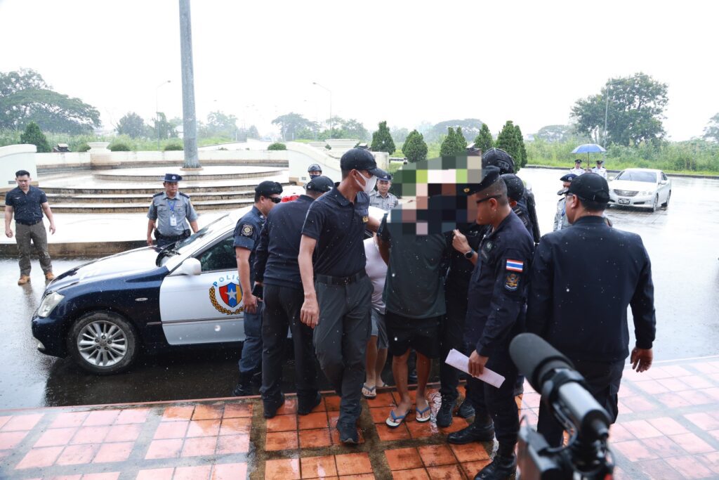 เลขาธิการ ป.ป.ส. กล่าวเพิ่มเติมว่า เมื่อวันที่ 1 กรกฎาคม 2568 สำนักปราบปรามยาเสพติด สำนักงาน ป.ป.ส. ได้ข้อมูลเบาะแสเกี่ยวกับ นายเตชินท์ฯ จึงประสานข้อมูลผ่าน อทป.ย่างกุ้ง ไปยัง สำนักงานคณะกรรมการเพื่อการควบคุมยาเสพติด (Central Committee for Drug Abuse Control : CCDAC) สาธารณรัฐแห่งสหภาพเมียนมา ให้ช่วยสืบสวนพิสูจน์ทราบที่พักอาศัยของนายเตชินทฯ ที่ใช้หลบซ่อนตัว จากการที่เจ้าหน้าที่นำกำลังเข้าตรวจค้นบ้านพักอาศัยดังกล่าว พบบุคคลตามหมายจับ จำนวน 2 คนคือ นายเตชินท์ หน่อวงค์ และ นายฉมัง กันทวงค์