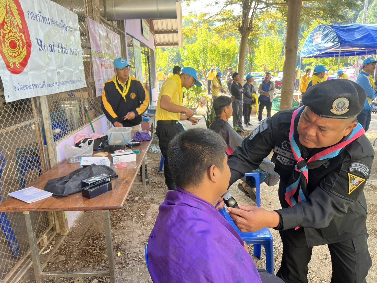 เมื่อวันที่ 17 ม.ค. 68 เวลา 09.00 น. -1100 กกล.ผาเมือง โดย ร้อย.ทพ.3208 ฉก.ทพ 32 จัด กพ.จิตอาสาพระราชทาน เราทำความดี “เพื่อชาติ ศาสนา พระมหากษัตริย์ ” ร่วมกับ ฝ่ายปกครอง อ.ทุ่งช้าง, หน่วยแพทย์ รพ.ทุ่งช้าง, หน.ส่วนราชการ, ผู้นำชุมชน และราษฏร บ.นํ้าสอด หมู่ 12 ต.และ อ.ทุ่งช้าง จว.น.น. ร่วมจัดกิจกรรม โครงการอำเภอยิ้มเคลื่อนที่ อ.ทุ่งช้าง จว.น.น. เพื่อเป็นการบริการประชาชนในเชิงรุกให้ทั่วถึงในพื้นที่ห่างไกล และรับฟังปัญหาอุปสรรค และความต้องการของประชาชนในพื้นที่ และนำไปสู่การแก้ไขปัญหา/พัฒนาพื้นที่ได้อย่างทันท่วงที โดยหน่วยได้จัดกำลังพลจิตอาสาฯให้บริการตัดผมฟรีเพื่อลดภาระค่าใช้จ่ายให้กับประชาชนในพื้นที่ และ ร่วมกันปลูกต้นไม้ ณ โรงเรียนบ้านนํ้าสอด หมู่ 12 ต.และ อ.ทุ่งช้างฯ โดยมี นายทวีศักดิ์ พุ่มมรดก นายอำเภอทุ่งช้าง เป็นประธาน มีผู้เข้าร่วมกิจกรรม จำนวน 120 คน