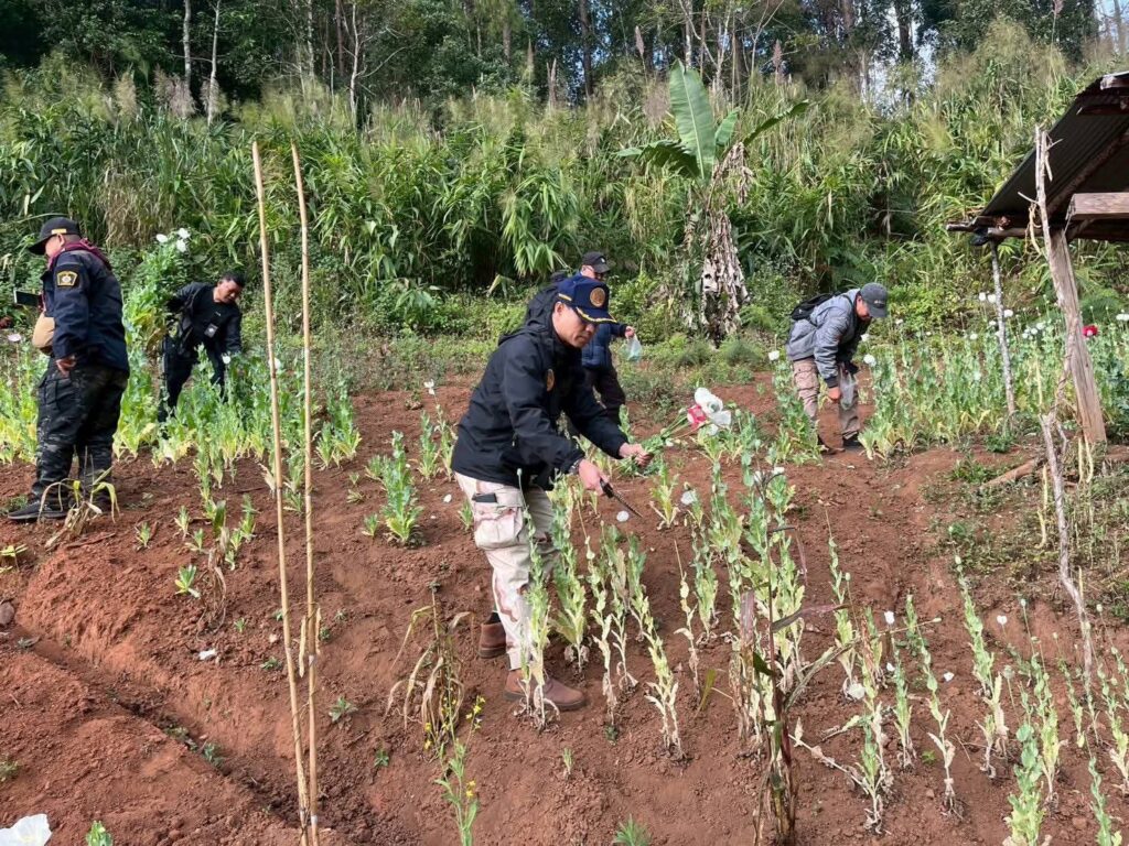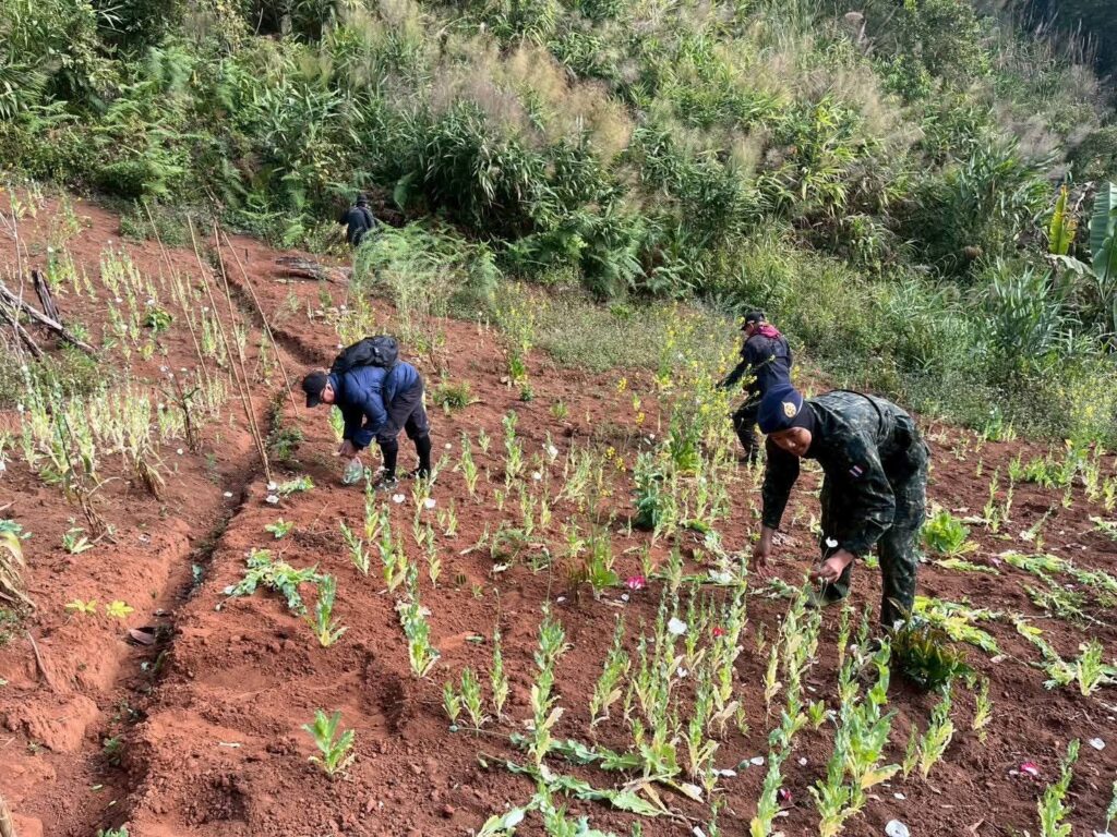 เชียงใหม่-อำเภอสะเมิงจัดชุดลาดตระเวนป้องกันเหตุเผาป่า เจอปลูกฝิ่นกว่า 100 ต้น ในป่าสงวนพื้นที่บ้านผายอง ต.แม่สาบ ร่วมกันตัดทำลาย พร้อมยึดบางส่วนส่ง สภ.สะเมิง สืบสวนหาตัวผู้กระทำผิด