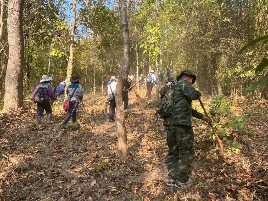 เมื่อวันที่ 17 ก.พ. 68 เวลา 08.30 น. กกล.ผาเมือง โดย ชป.กร.309 ร่วมกับ อุทยานแห่งชาติผาแดง, ผู้นำหมู่บ้าน/ชุมชน และจิตอาสาประชาสังคม บ.โป่งอาง จัดกิจกรรมขับเคลื่อนเครือข่ายการมีส่วนร่วม โดยการทำแนวกันไฟ ระยะทางประมาณ 5 กม. ตามแผนปฏิบัติการป้องกันภัยชุมชนระดับตำบล “เมืองนะ รักษ์น้ำ รักษ์ป่า รักษาธรรมชาติ“ ณ ป่าชุมชน บ.โป่งอาง ม.5 ต.เมืองนะ อ.เชียงดาว จว.ช.ม. มีผู้เข้าร่วมกิจกรรม จำนวน 40 คน