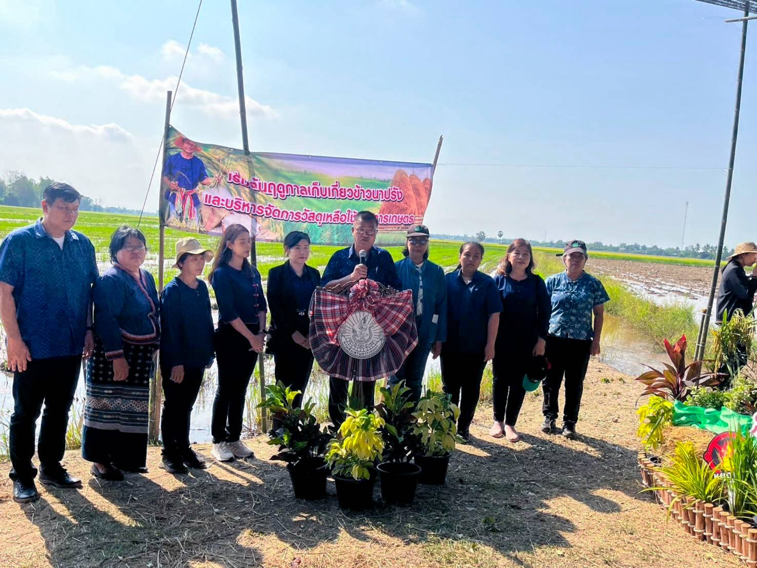 นายบุญฤทธิ์ สโมสร ผู้อำนวยการสำนักงานบริหาร มหาวิทยาลัยเทคโนโลยีราชมงคลล้านนา พิษณุโลก พร้อมด้วยคณาจารย์และบุคลากร ร่วมพิธีเปิดและร่วมจัดนิทรรศการในกิจกรรม “วันสาธิตการย่อยสลายตอซังและฟางข้าว” ณ แปลงนาเกษตรกร บ้านท่าช้าง หมู่ 9 ตำบลท่าช้าง อำเภอพรหมพิราม จังหวัดพิษณุโลก เมื่อวันที่ 14 มีนาคม 2568