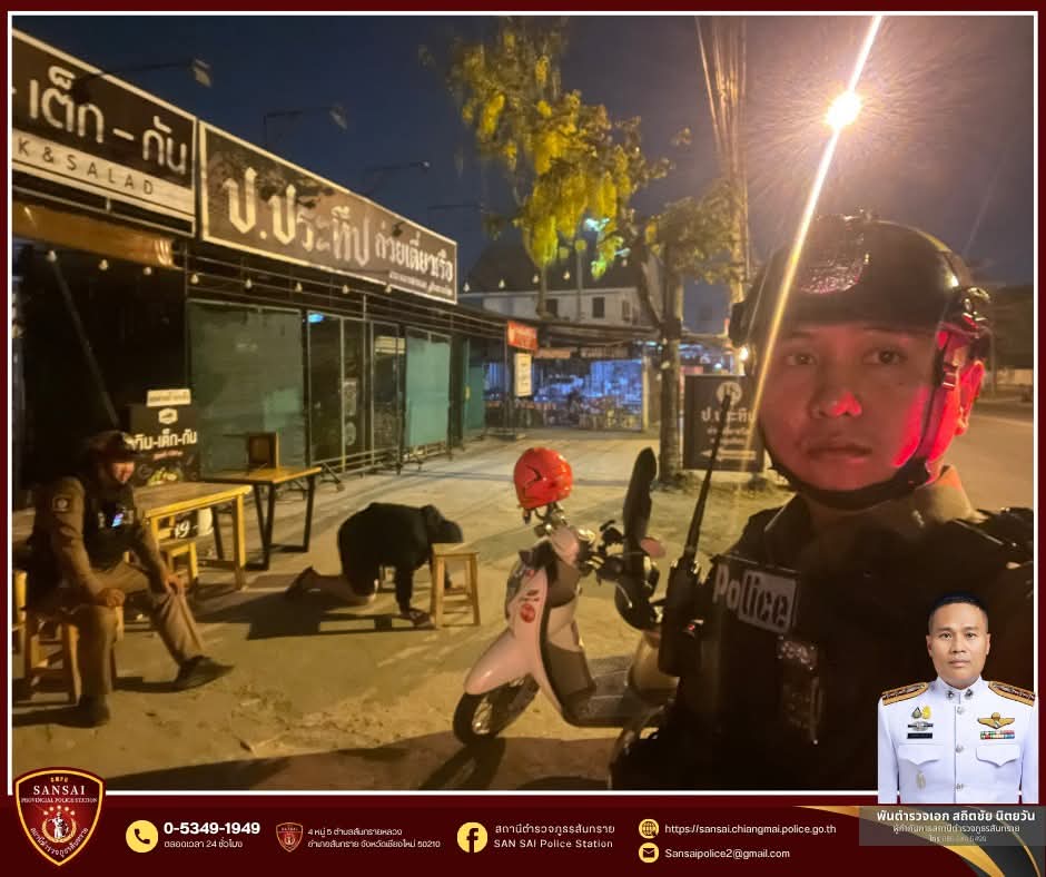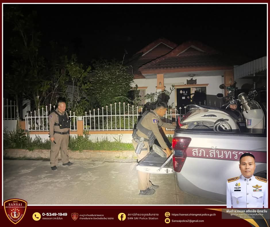 วันที่ 17 เม.ย.69 เวลา 02.50 น.โดยการอำนวยการของ พ.ต.อ.สถิตชัย นิตยวันผกก.สภ.สันทราย พ.ต.ท.วิฑูรย์ คำมา รอง ผกก.ป.สภ.สันทรายพ.ต.ท.อริญชย์ บรรเทาสวป.สภ.สันทราย ช่วยประชาชนกรณีนอนหลับข้างทาง รับแจ้งจากพลเมืองดีโทรไป 191 ว่ามีชายเมาสุราไม่ได้สติอยู่บริเวณหน้าร้านป.ประทีป ต.สันทรายน้อยฯ เจ้าหน้าที่สายตรวจรถจักรยานยนต์ ได้ไปตรวจสอบพบรถจักรยานยนต์จอดอยู่ข้างทาง และ ชาย(ไม่ทราบชื่อ) นอนหลับอยู่บริเวณร้านป.ประทีป ต.สันทรายน้อยฯ จึงได้ทำการปลุกและสอบถามแต่ไม่ได้คำตอบ จึงได้ทำการตรวจสอบเบื้องต้น พบบัตรประชาชนของชายดังกล่าว จึงประสานเจ้าหน้าที่สายตรวจรถยนต์ พาชายดังกล่าวนำส่งที่บ้านอย่างปลอดภัย และได้รับคำขอบคุณจากประชาชนที่ให้ความช่วยเหลือ
