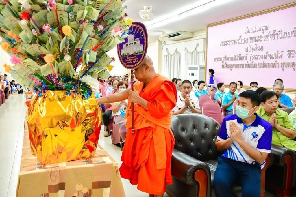 สุโขทัย-ชาวสวรรคโลกจัดผ้าป่าสามัคคีมอบโรงพยาบาลสวรรคโลกจัดซื้อครุภัณฑ์ตึกใหม่วันที่ 17 พฤษภาคม 2568 พระวัชรสิริคุณ (หลวงน้าเสน่ห์ สิริวฑฺฒโน) ที่ปรึกษาเจ้าคณะจังหวัดสุโขทัย พระครูสุขุมธรรมนิเทศก์ เจ้าคณะอำเภอสวรรคโลก เจ้าอาวาสวัดท่าเกษม นายเอนก วิทยาพิรุณทอง นายอำเภอสวรรคโลก หัวหน้าส่วนราชการ และประชาชนชาวอำเภอสวรรคโลก ได้ร่วมพิธีทอดผ้าป่าสามัคคีเพื่อสมทบทุนจัดซื้อครุภัณฑ์รองรับการเปิดให้บริการอาคารผู้ป่วยนอก 6 ชั้น ของโรงพยาบาลสวรรคโลก จังหวัดสุโขทัย ในวันเสาร์ที่ 17 พฤษภาคม พุทธศักราช 2568ตรงกับวันแรม 6 ค่ำ เดือน 6 ปีมะเส็ง