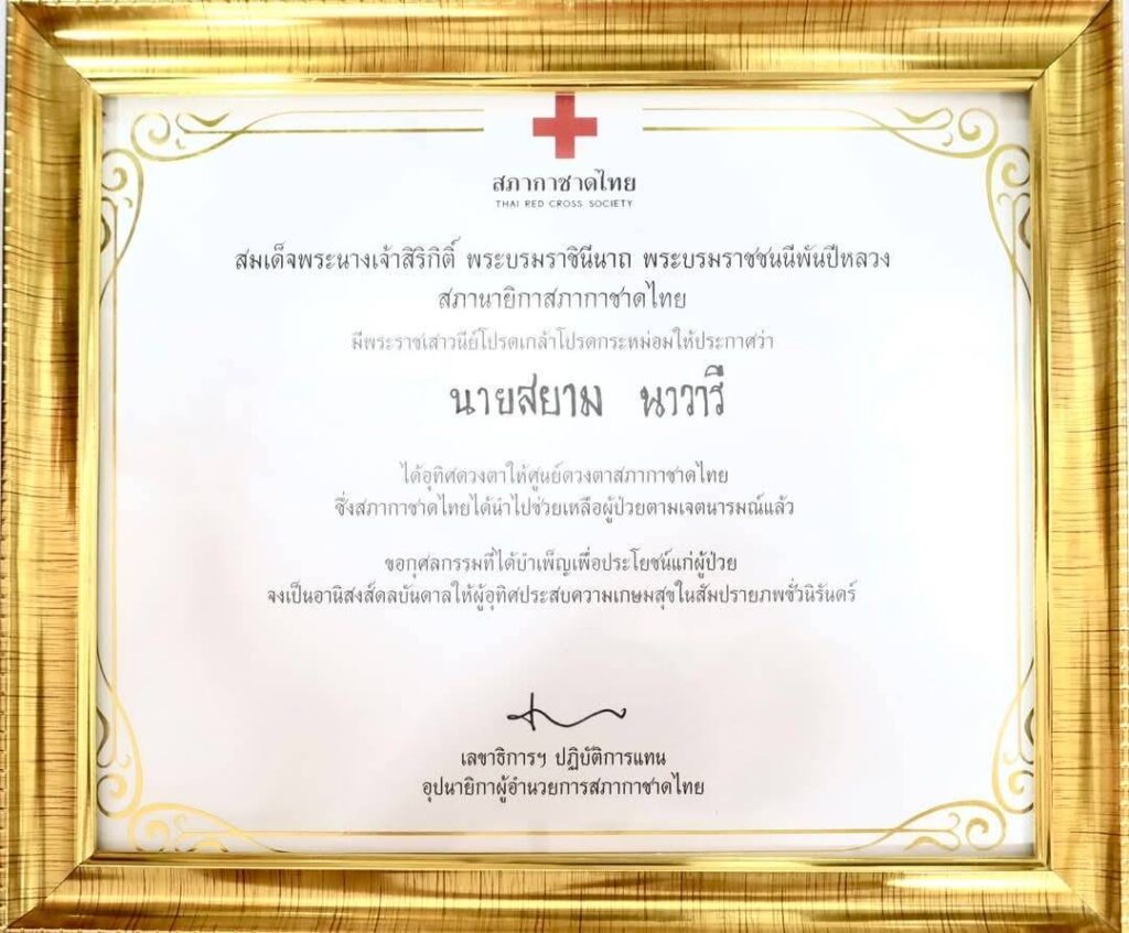 ให้กำลังใจครอบครัวของ นายสยาม นาวาวี อายุ 46 ปี (ผู้วายชนม์) ทางครอบครัวบริจาคดวงตา ให้ศูนย์ดวงตาสภากาชาดไทย และบริจาคอวัยวะ ให้กับศูนย์รับบริจาคอวัยวะสภากาชาดไทย