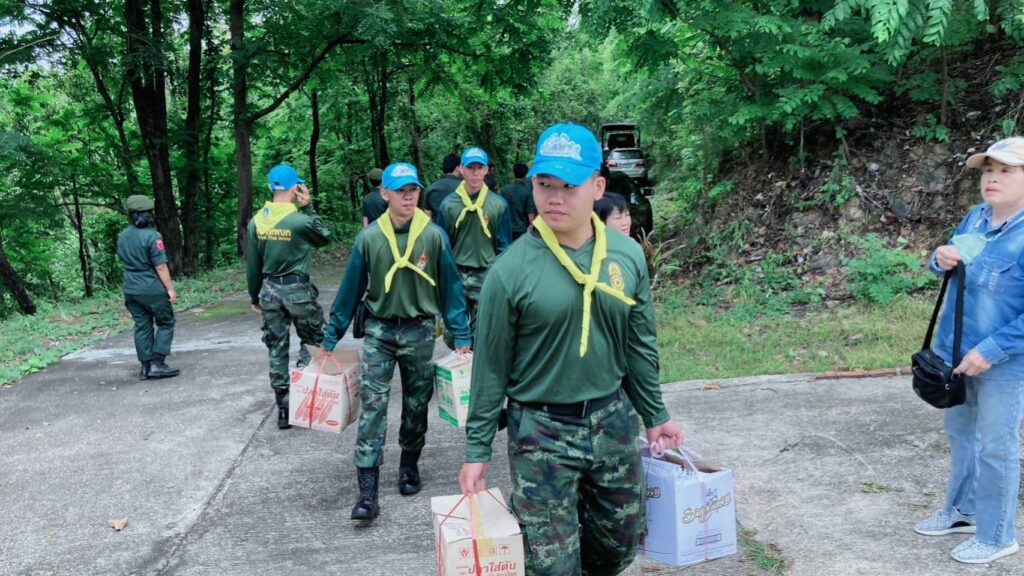 จาก ศูนย์ฝึกนักศึกษาวิชาทหารมณฑลทหารบกที่ 32 รวมจำนวน 25 นาย และพี่น้องชุมชนไทลื้อ ร่วมแรงร่วมใจขนสิ่งของเครื่องสักการะ และขนย้ายน้ำดื่มจำนวน 250 แพ็ค เพื่อเตรียมงานประเพณีสรงน้ำพระธาตุ ประจำปี 2568 วัดพระธาตุดอยม่วงคำ ตำบลกล้วยแพะ อำเภอเมืองลำปาง จังหวัดลำปาง