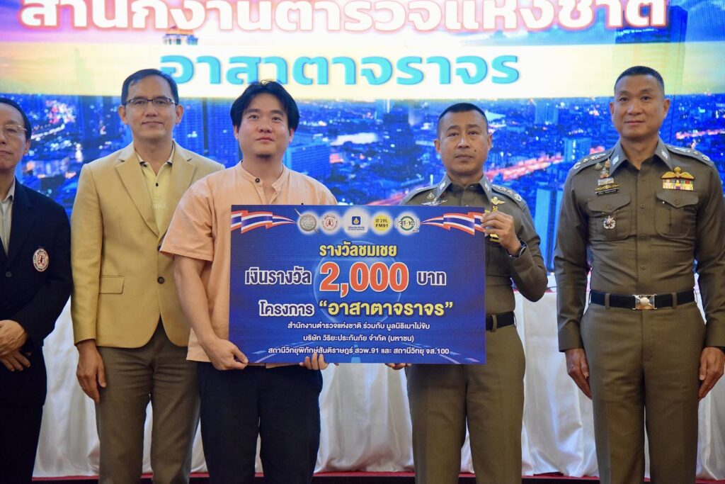 วันนี้ (17 มิถุนายน 2568) เวลา 14.00 น. พล.ต.อ.ไกรบุญ ทรวดทรง รองผู้บัญชาการตำรวจแห่งชาติ มอบหมายให้ พล.ต.ท.สำราญ นวลมา ผู้ช่วยผู้บัญชาการตำรวจแห่งชาติ พร้อมด้วย พล.ต.ท.นิธิธร จินตกานนท์ ผู้บัญชาการศึกษา/หัวหน้าคณะทำงานเสริมสร้างภาพลักษณ์ตำรวจจราจร ศูนย์บริหารงานจราจร สำนักงานตำรวจแห่งชาติ , พล.ต.ต.สุทธิพงศ์ แจ้งอริยวงศ์ รองผู้บัญชาการสำนักงานยุทธศาสตร์ตำรวจ , พล.ต.ต.สหัสสชัย โลจายะ ผู้บังคับการกองแผนงานความมั่นคง , พ.ต.อ.สุขสวัสดิ์ คูสิทธิผล รองผู้บังคับการตำรวจทางหลวง , พ.ต.อ.ณัฐพงศ์ เชื้อเดช รองผู้บังคับการตำรวจจราจร และภาคีเครือข่ายที่เกี่ยวข้อง ได้แก่ นพ.แท้จริง ศิริพานิช เลขาธิการมูลนิธิเมาไม่ขับ , คุณพงศ์พันธ์ ประภาศิริลักษณ์ ผู้จัดการฝ่ายสื่อสารองค์กร บริษัท วิริยะประกันภัย จำกัด (มหาชน) , สถานีวิทยุพิทักษ์สันติราษฎร์ สวพ.91 , สถานีวิทยุ จส.100 และ พล.ต.ท.อนันต์ ศรีหิรัญ อดีตผู้ช่วยผู้บัญชาการตำรวจแห่งชาติ/คณะกรรมการบูรณาการกู้ชีพฉุกเฉินและความปลอดภัยทางถนน วุฒิสภา ร่วมแถลงผลการขับเคลื่อนโครงการ “อาสาตาจราจร” ซึ่งเป็นการดำเนินการต่อเนื่องเป็นปีที่ 4 โดยยังคงมอบเงินรางวัลให้กับเจ้าของคลิปกล้องหน้ารถที่บันทึกอุบัติเหตุทางถนนหรือการกระทำผิดกฎจราจรที่เป็นเหตุการณ์สำคัญ ที่สามารถใช้เป็นหลักฐานในการดำเนินคดี หรือเป็นคลิปที่เป็นอุทาหรณ์สำคัญที่จะช่วยให้ประชาชนเกิดการตระหนักรู้ในการขับขี่ตามกฎจราจร โดยงานวันนี้มีการมอบรางวัลให้กับคลิปที่ได้รับการคัดเลือกประจำเดือนกุมภาพันธ์และมีนาคม 2568 รวม 20 รางวัล เป็นเงินจำนวนทั้งสิ้น 100,000 บาท โดยบริษัท วิริยะประกันภัย จำกัด (มหาชน) เป็นผู้สนับสนุน ณ ห้องสารสิน อาคาร 1 สำนักงานตำรวจแห่งชาติ