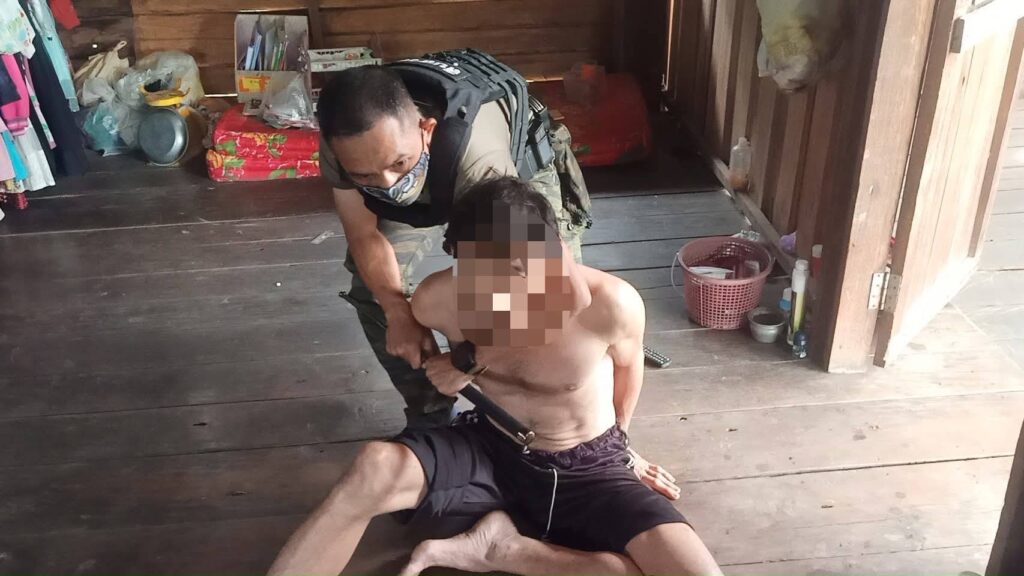แต่เนื่องจากว่า ที่ผ่านมานายโต้งจะเข้าออกบ้านในช่วงเวลาดึก และไม่ได้พักอาศัยอยู่ประจำที่บ้าน จึงหลุดรอดการจับกุมของเจ้าหน้าที่ตำรวจได้หลายครั้ง ต่อมาเข้าวันนี้ ขณะนายโต้ง ขี่รถจักรยานยนต์จะเข้าบ้าน ได้ขี่รถจักรยานยนต์ปาดหน้า รถยนต์ของสายลับในลักษณะเร่งรีบ สายลับจึงแอบตามไป พบว่านายโต้ง ขี่รถจักรยานยนต์เข้าไปในบ้านของตนเอง สายลับจึงรีบแจ้งเจ้าหน้าที่ตำรวจ เจ้าหน้าที่ตำรวจจึงเข้าไปทำการจับกุมตัวได้ จากนั้นได้ทำการตรวจค้นบ้านพัก ของนายโต้ง พบอาวุธปืนยาวแบบไทยประดิษฐ์ จำนวน 2 กระบอก ที่นายโต้งซุกซ่อนไว้ เจ้าหน้าที่ได้สอบถามเรื่องยาเสพติด นายโต้งรับว่าตนเองพึ่งจะเสพยาบ้าไปก่อนหน้าที่เจ้าหน้าที่ตำรวจจะเข้ามาตรวจค้น จำนวน 2 เม็ด จากการตรวจสอบยืนยันผลจากโรงพยาบาลพบว่าปัสสาวะของนายโต้งมีสารเสพติดในปัสสาวะจริง