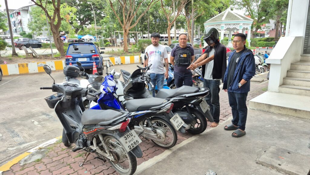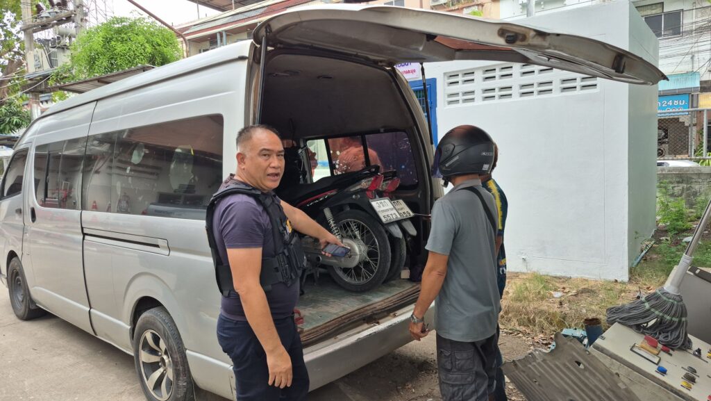 เมื่อเวลา 14.30 น. (16 กรกฎาคม 2568 ) พ.ต.ท.ศุภวัฒน์ ลัทธปรีชา รอง.ผกก.ป.สภ.บางละมุง , พ.ต.ท.ฤทธิไกร กะระกล รอง.ผกก.สส.สภ.หนองขาม พร้อมตำรวจ 2 โรงพัก สภ.บางละมุง และ สภ.หนองขาม ร่วมกันจับกุม นายปวีณ เบ๊ะกี่ อายุ 20 ปี , นายออม นามสมมุติ หรือฉายา “ออม เถ้าแก่น้อย” อายุ 17 ปี พร้อมของกลาง รถจักรยายนต์ ซึ่งถูกโจรกรรมมาจากพื้นที่ สภ.บางละมุง และ สภ.หนองขาม รวมทั้งหมด 3 คัน ขณะเตรียมขนขึ้นรถตู้ ภายในป่าไร่มันสำปะหลัง ซอยตะเคียนเตี้ย ต.ตะเคียเตี้ย อ.บางละมุง จ.ชลบุรี