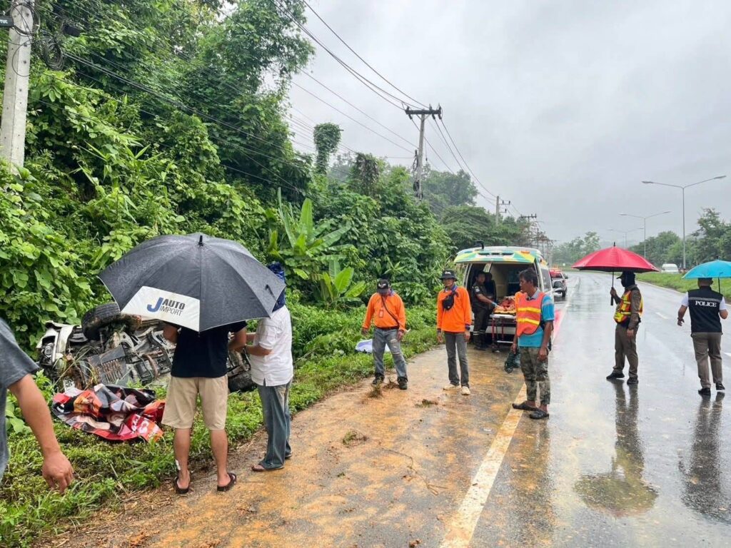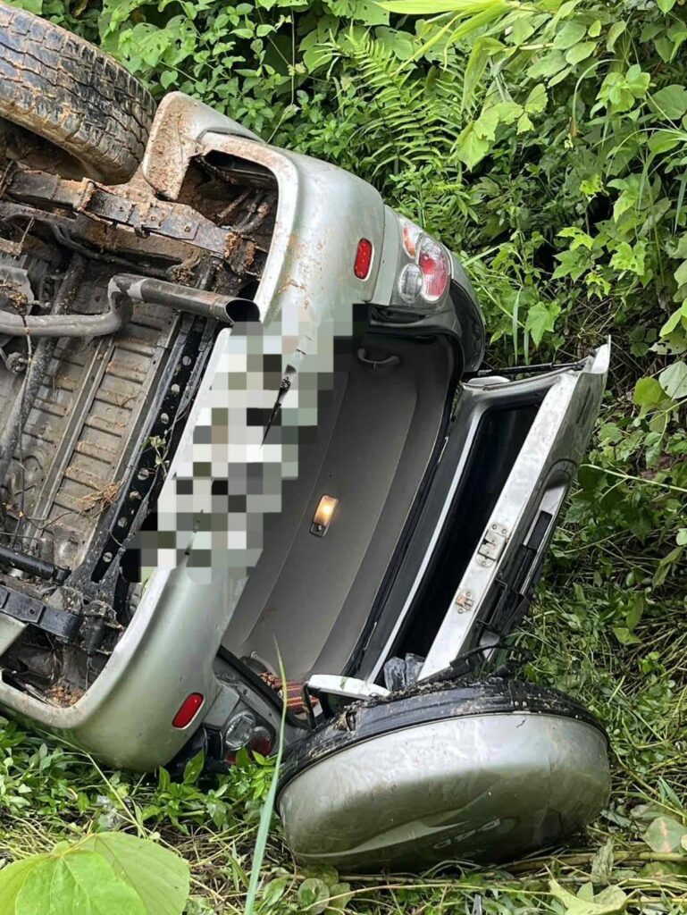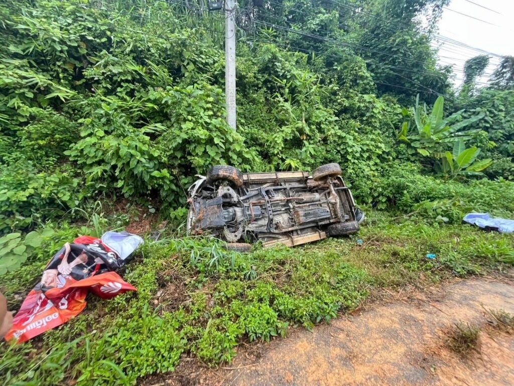 แพร่-ระวัง !!! ฝนตกเกิดอุบัติเหตุ รถยนต์ลื่นลงข้างโค้งบ้านปงห้วยไร่ บาดเจ็บ 2 ราย