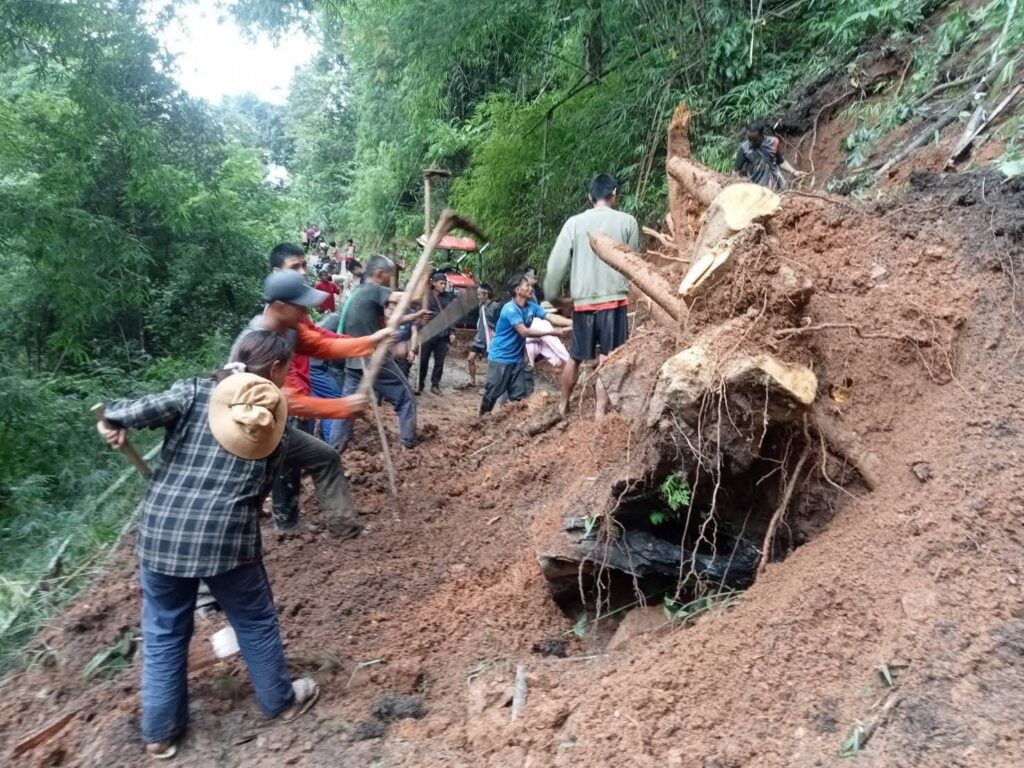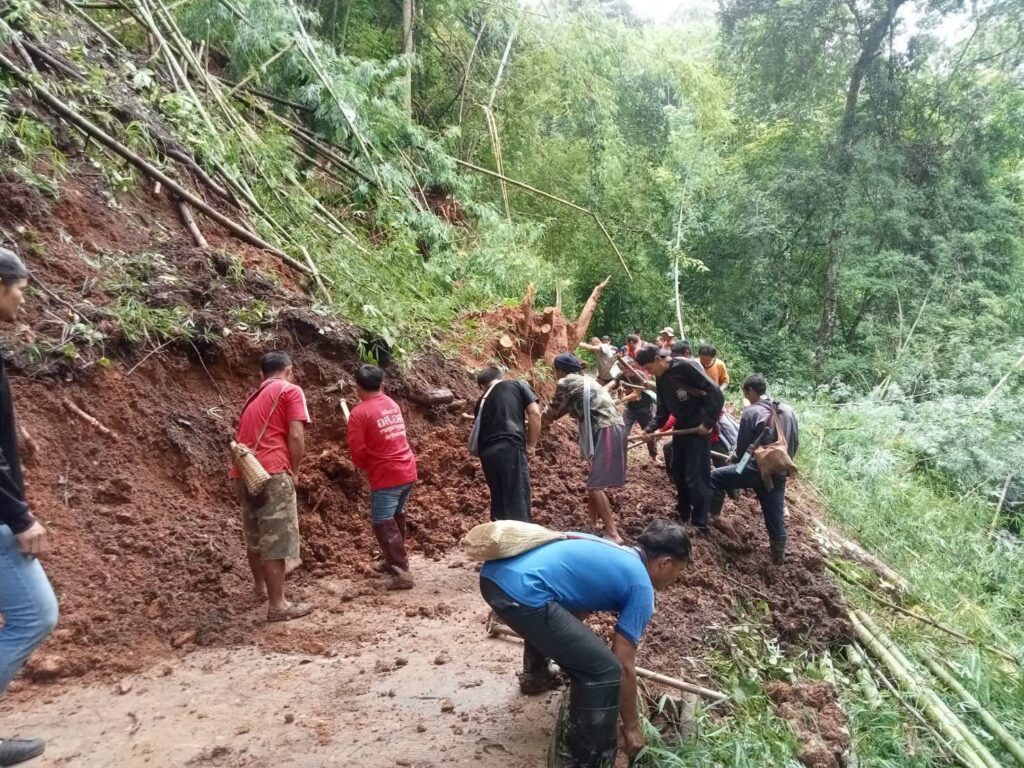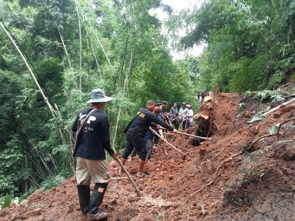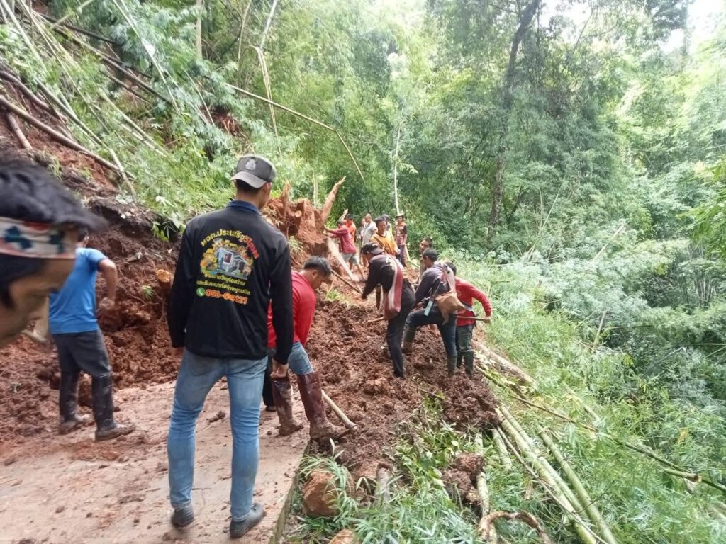 แม่สะเรียงเฝ้าระวังฝนตกดินสไลด์ ดินปิดถนนเส้นทางบ้านแม่สอง